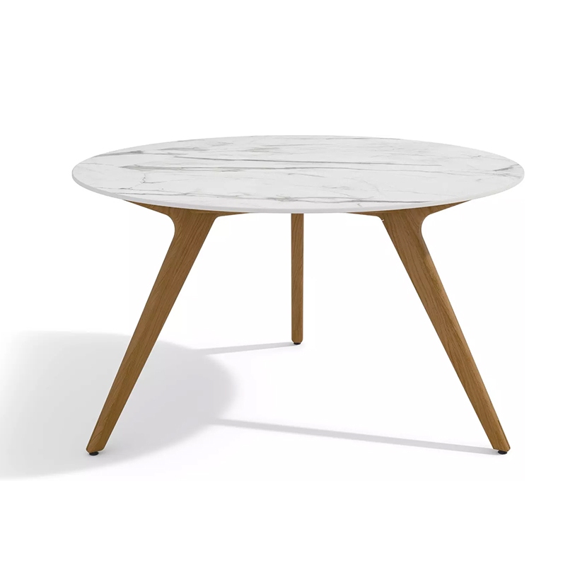 Torsa is the epitome of sophistication: slender and light. The sculpted wooden base is combined with a tabletop made of faux marble or monochrome ceramic. A relaxing coffee break, a festive banquet or jolly aperitif: Torsa tables turn any occasion into a moment to remember. Thanks to its understated size, Torsa is apt for small or large spaces and is multi-functional.