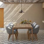 Clean lines and strong curves give Sunrise an undeniably compelling posture, while the warmth of its materials and openness of its frame form an irresistible invitation for endless moments of outdoor enjoyment. Available in warm brushed teak and bold teak scuro, Sunrise includes a complete range of both lounge and dining furniture. Dark teak details and a backrest upholstered in fabric or batyline® complete the design of this robust yet elegant teak collection by Matthew Townsend. From countryside residence to avant-garde hotel or even a futuristic yacht, Sunrise’s versatility makes it a captivating addition to any environment.