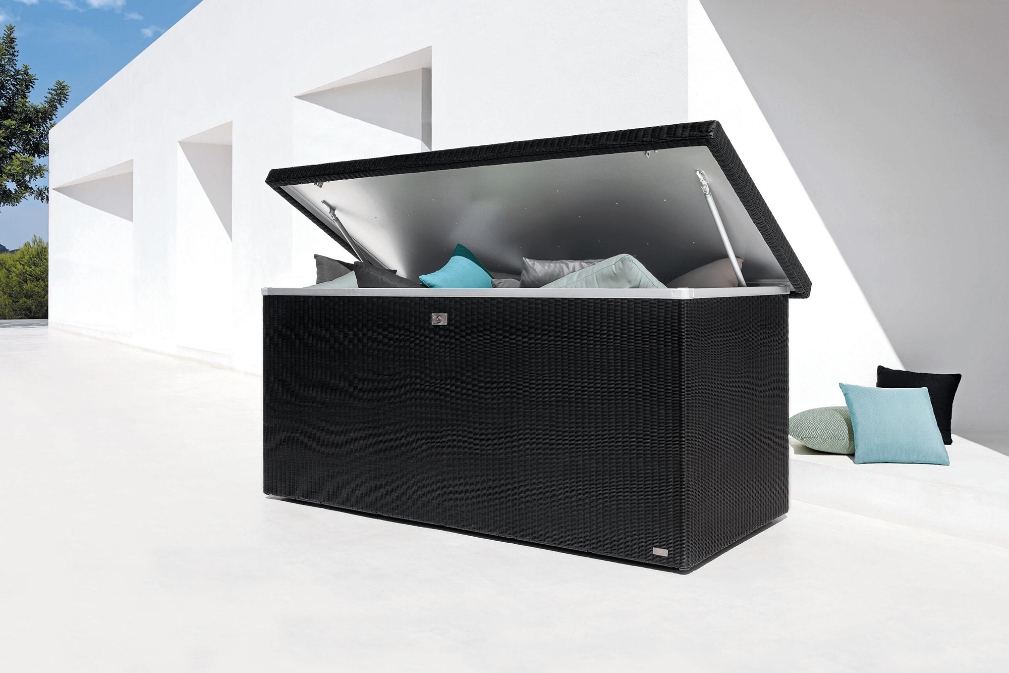 With Aspen, even storage can be done in style. Meet our elegant solution to put away your comfortable pillows and seating cushions during wintertime, or when they are not in use. Tested and approved to brave all weather conditions, the Aspen cushion box comes in two sizes and different colours of weaving.