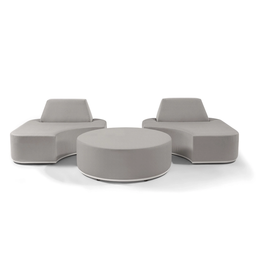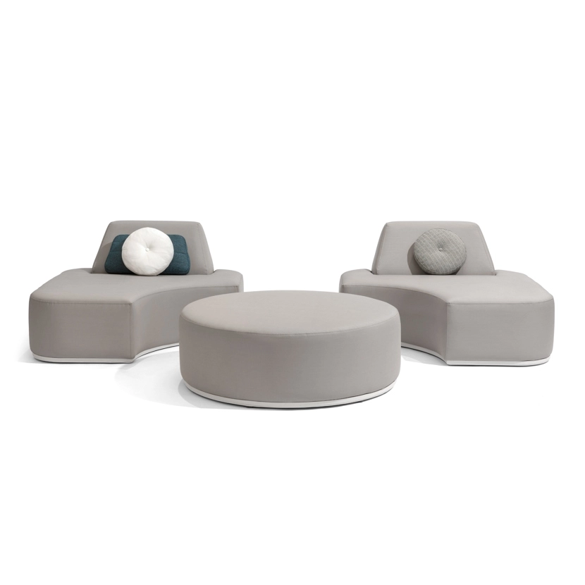 Moon Island consists of four sofa islands that can be mixed and moved around a central coffee table or footrest. The minimalist design gives your imagination free rein: possibilities range from an intimate sofa corner to an accommodating lounge island. The Moon Island collection comes in a wide variety of fabrics and colors.