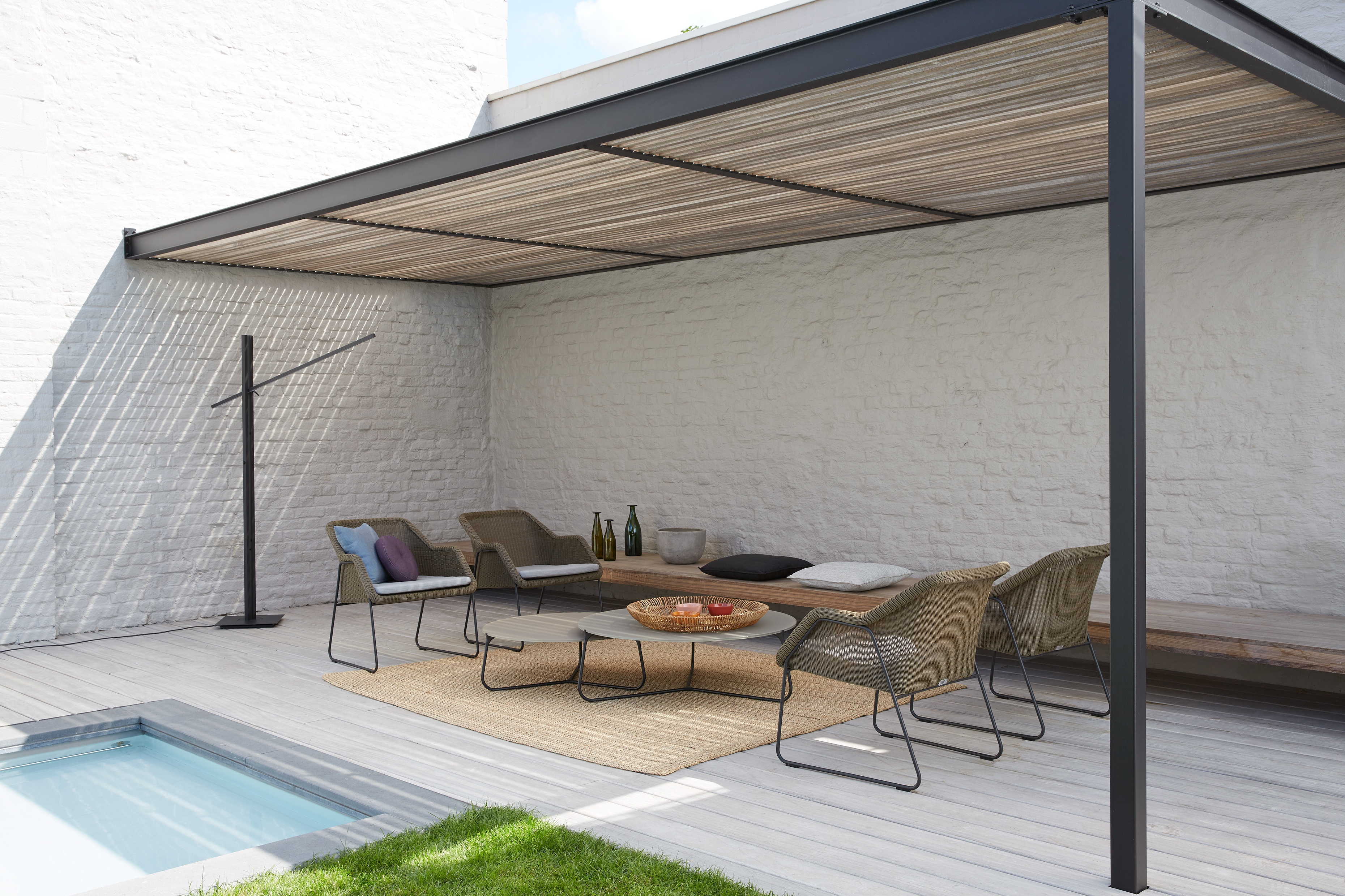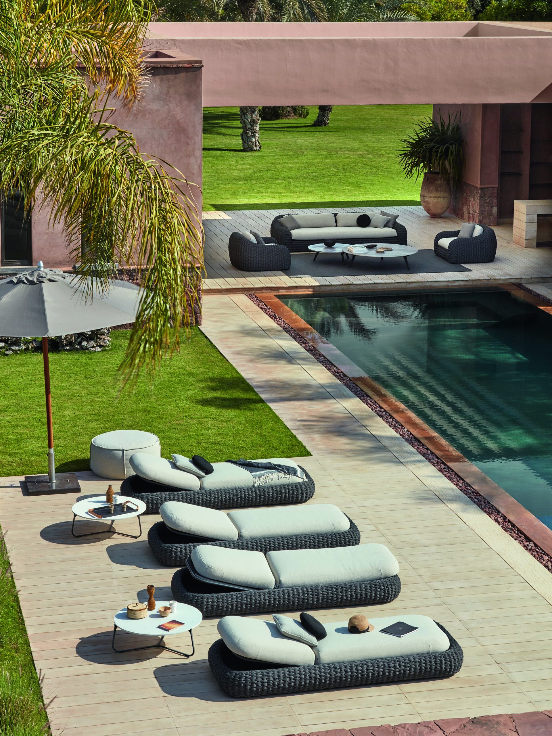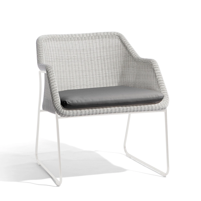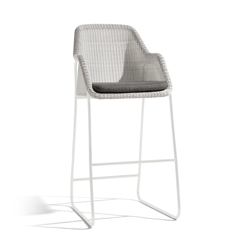 Mood is a lightweight and durable collection of resin wicker furniture. Designed with translucence in mind, the chairs are available as high or low units. This collection also includes side tables in different sizes and finishes.