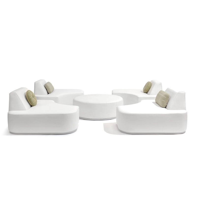 Moon Island consists of four sofa islands that can be mixed and moved around a central coffee table or footrest. The minimalist design gives your imagination free rein: possibilities range from an intimate sofa corner to an accommodating lounge island. The Moon Island collection comes in a wide variety of fabrics and colors.
