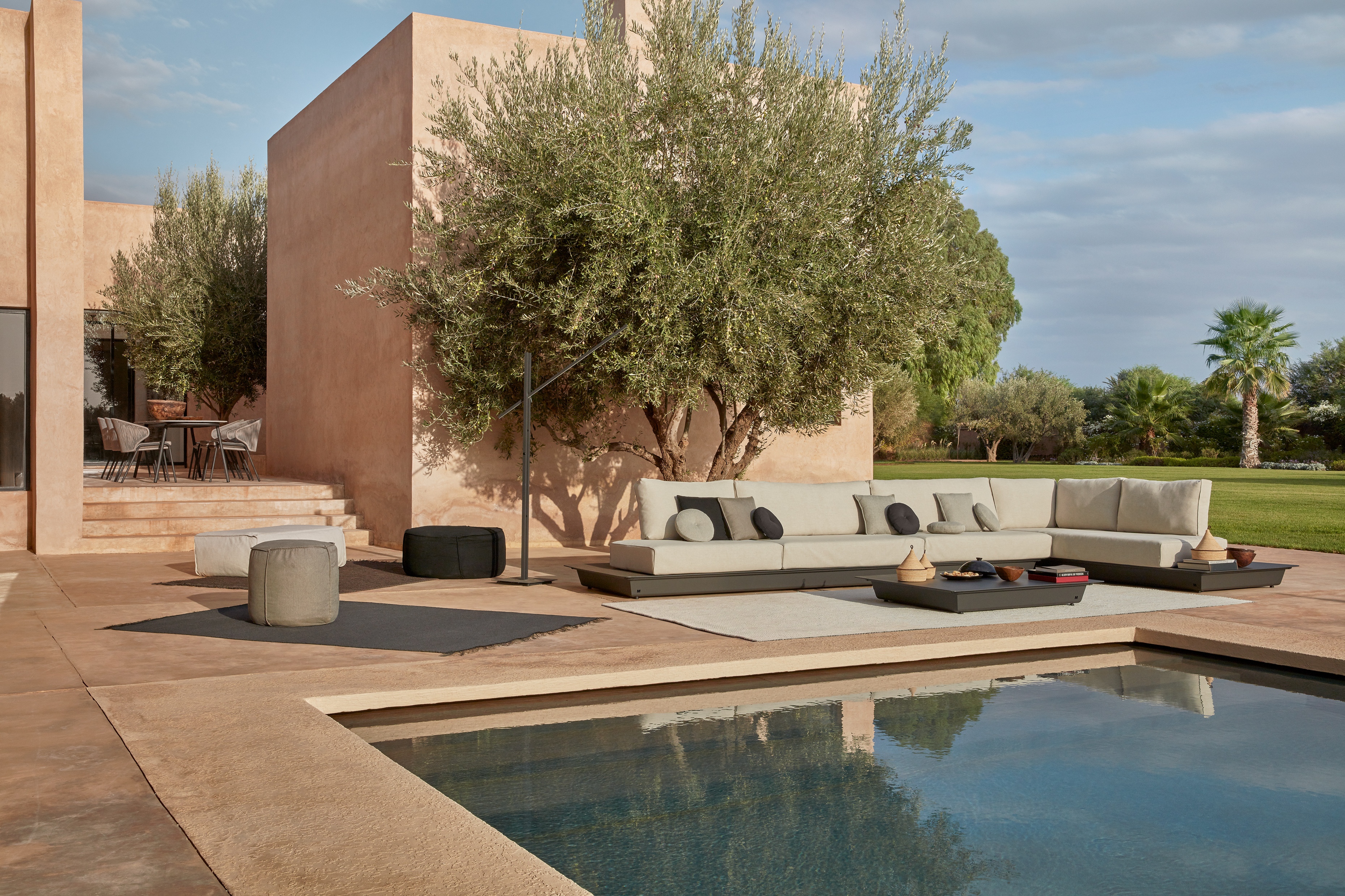 Discover our outdoor poufs from our collection Touch for a luxury lounge experience.