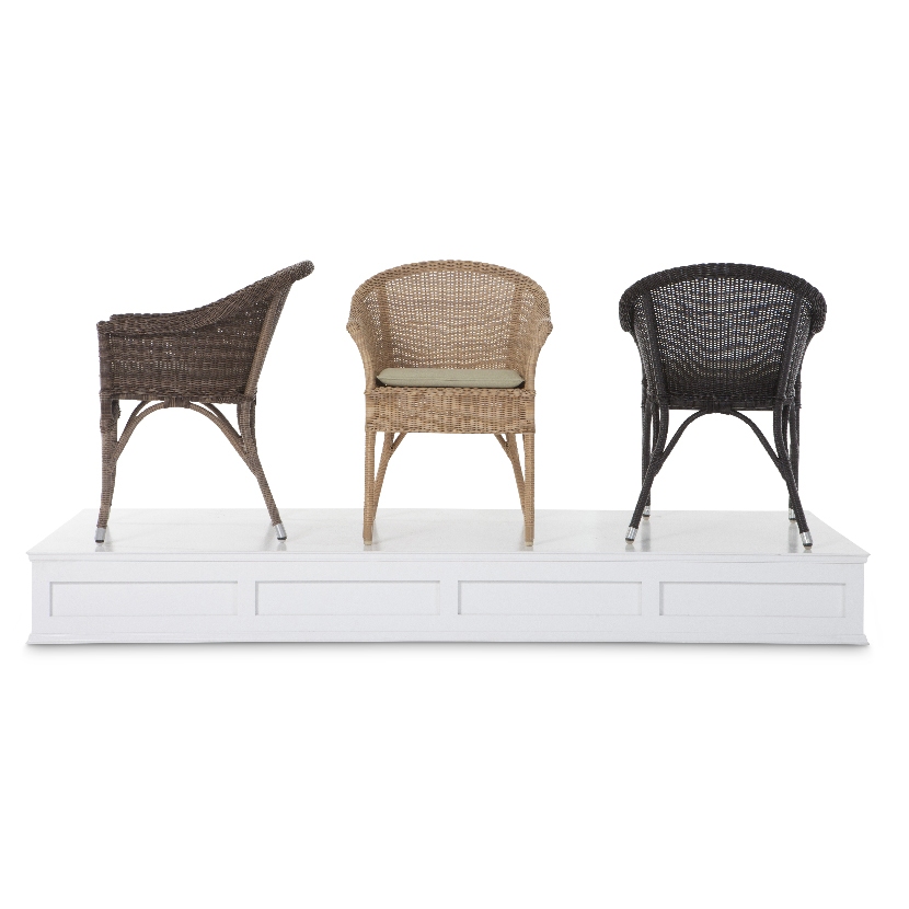 - Frame designed in a durable powder coated aluminum and wrapped in an all-weather outdoor rattan