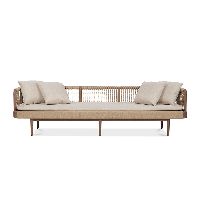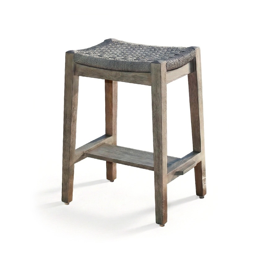 - Mahogany wood base with seat in hand-woven natural rope to add texture and visual interest