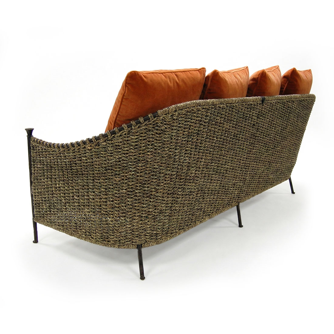 - Frame in woven natural rope. The seat deck is padded and fully upholstered with fabric.