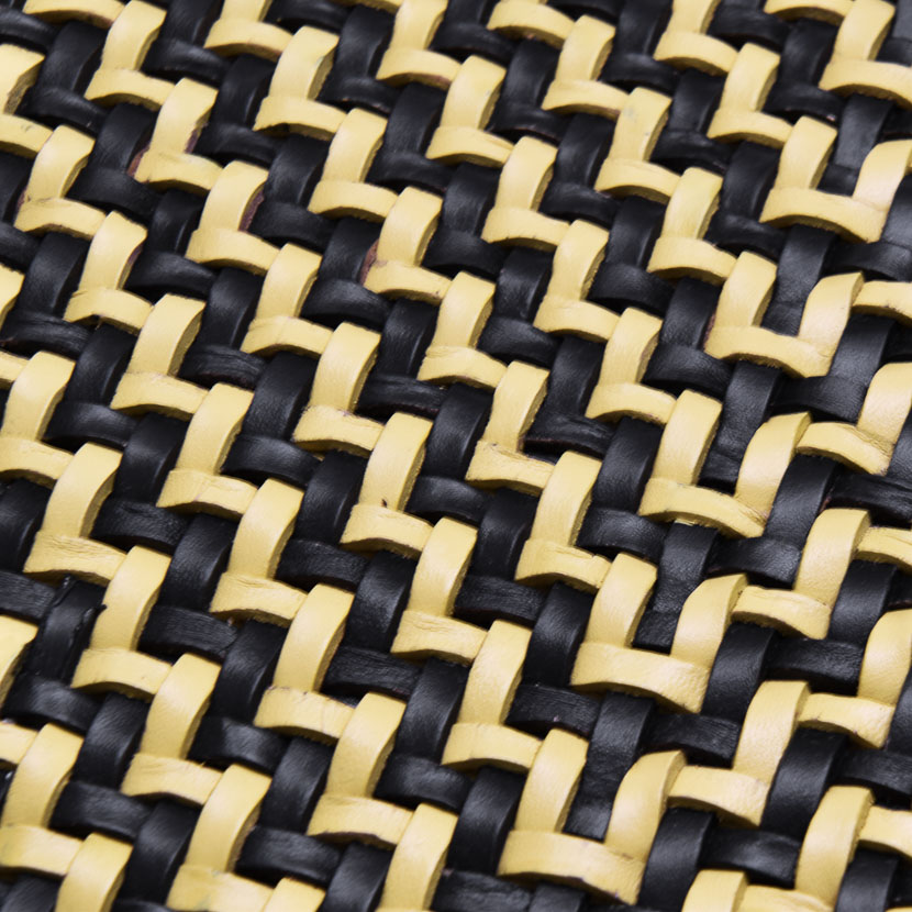 - Padded seat and back upholstered with handwoven leather, pictured in Natural and Black color weave