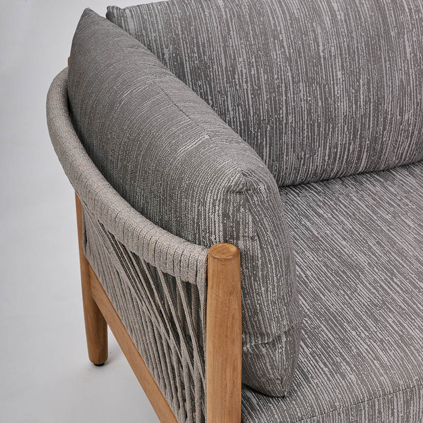With remarkable comfort and elegant styling, the Georgica lounge collection invites you to sink in. Constructed from solid teak wood, subtle curves complement contrasting woven rope panels. Georgica is offered as a sectional sofa allowing a variety of planning configurations.