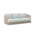 Wainscott Outdoor Collection commands attention by layering handwoven, all-weather rope in powerful vertical lines. Designed with natural spaces in mind, the rhythmic repetition of rope melts into outdoor settings, as the vertical pattern emulates the lines of trees, grasses, and things that grow. As the sun sets, the play of light and shadow across the woven frames coalesce with the landscape, mirroring the very environment they occupy. The Wainscott Collection includes seating essentials for lounging and dining, which can pair effortlessly with a variety of table and casegood styles thanks to its uncomplicated geometry and refined aesthetic appeal.