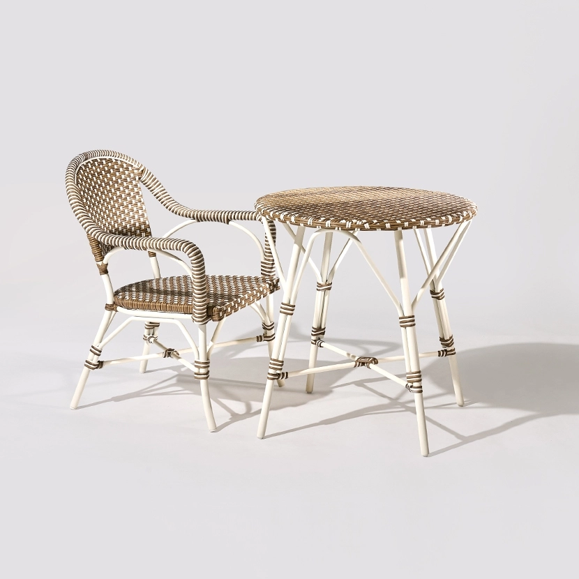 At the heart of this collection are the French style bistro chairs, featuring a curved backrest and sturdy legs reminiscent of the iconic chairs found on the streets of Paris. However, with a modern twist, these chairs are made with bright All-Weather material, making them suitable for both indoor and outdoor use. Available in a range of vibrant colors, they inject a pop of life and personality into any setting.
