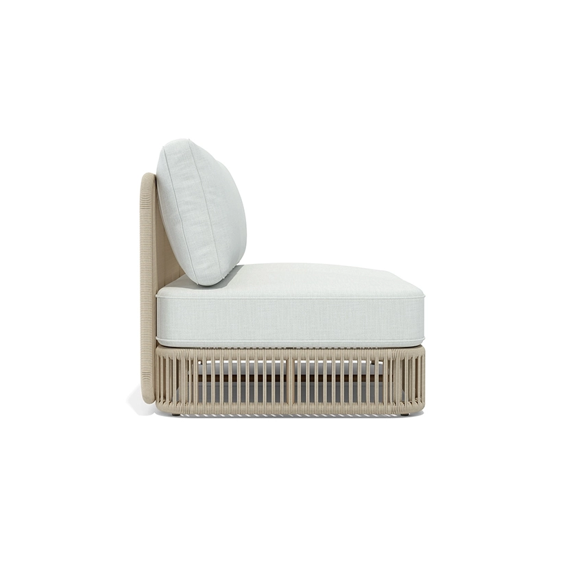 Wainscott collection features handwoven, all-weather rope in powerful vertical lines. Designed with natural spaces in mind, its rhythmic repetition mimics the surrounding landscape and seamlessly integrates into indoor and outdoor settings. The collection includes seating options for lounging and dining, with a versatile and sophisticated design