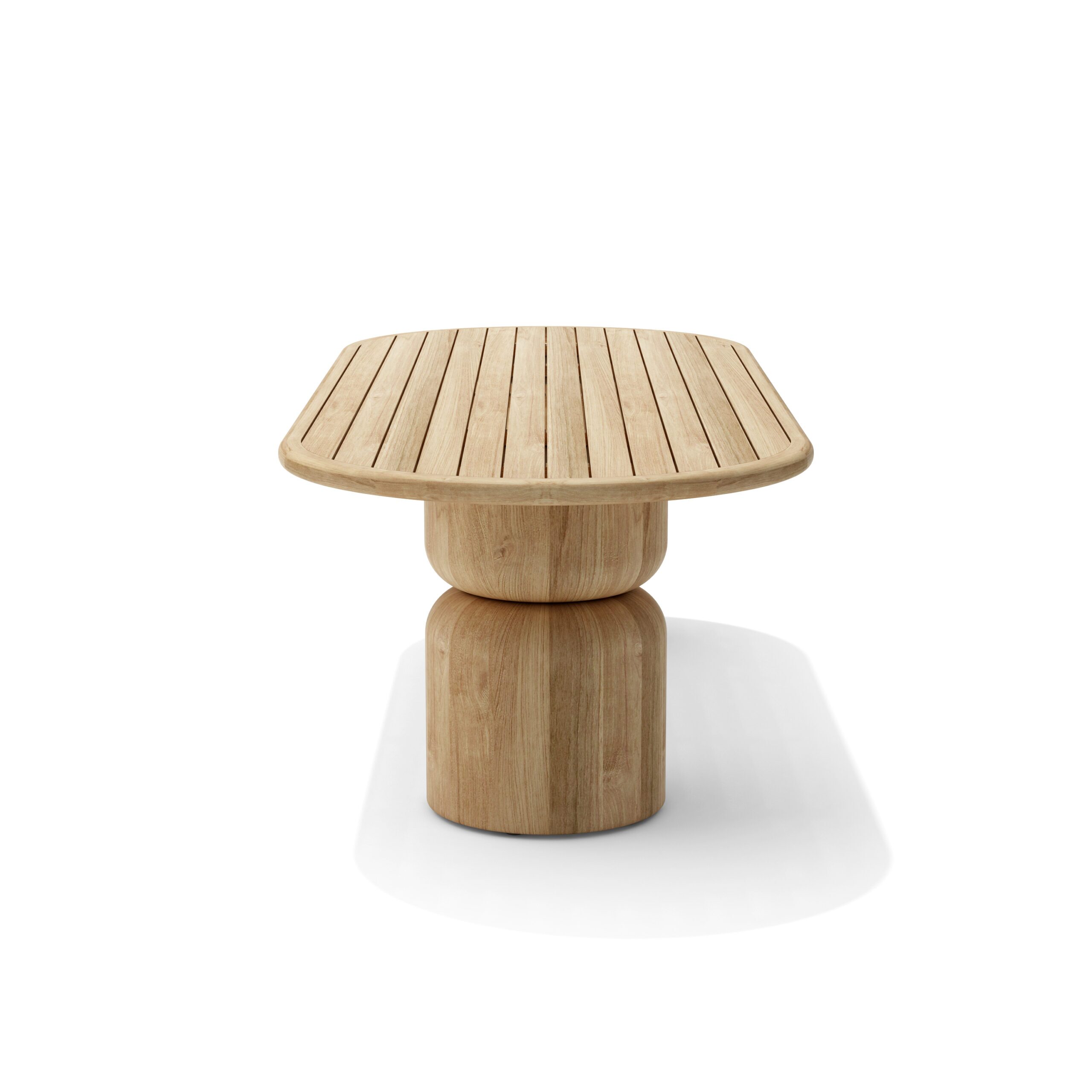 The Bali Tables Collection celebrates sculptural form and natural warmth. Each piece, made from solid teak wood, shows soft curves and bold round legs. The look feels modern yet timeless, blending smooth lines with the wood’s organic texture.