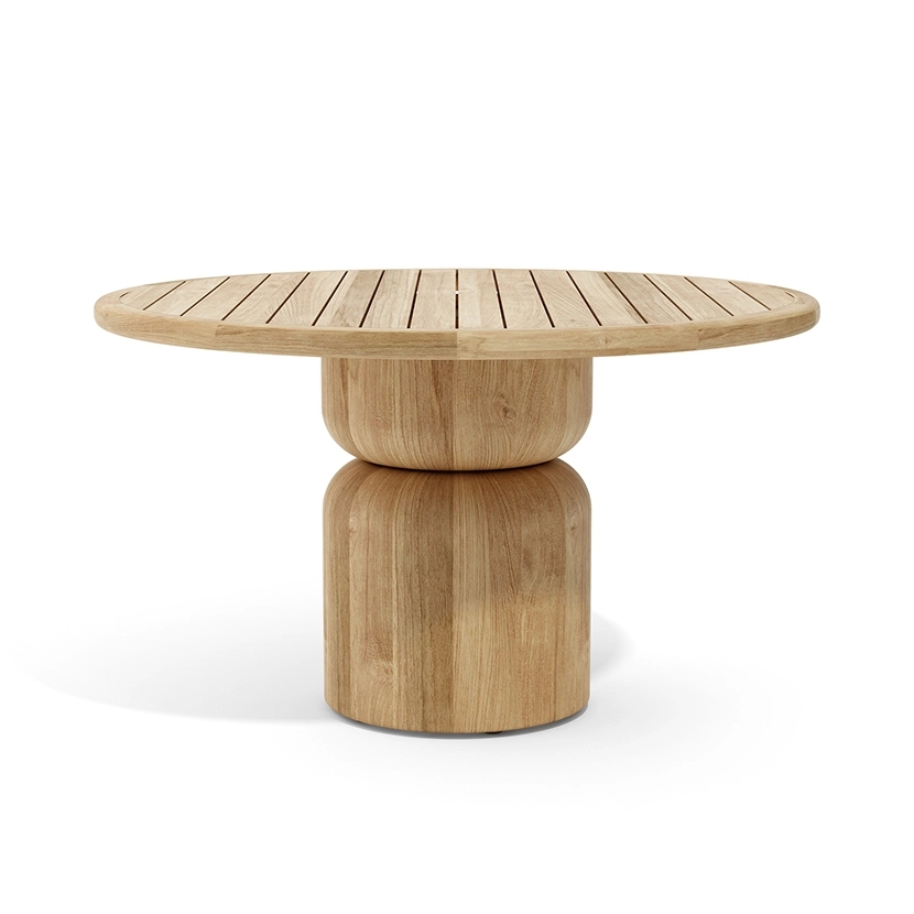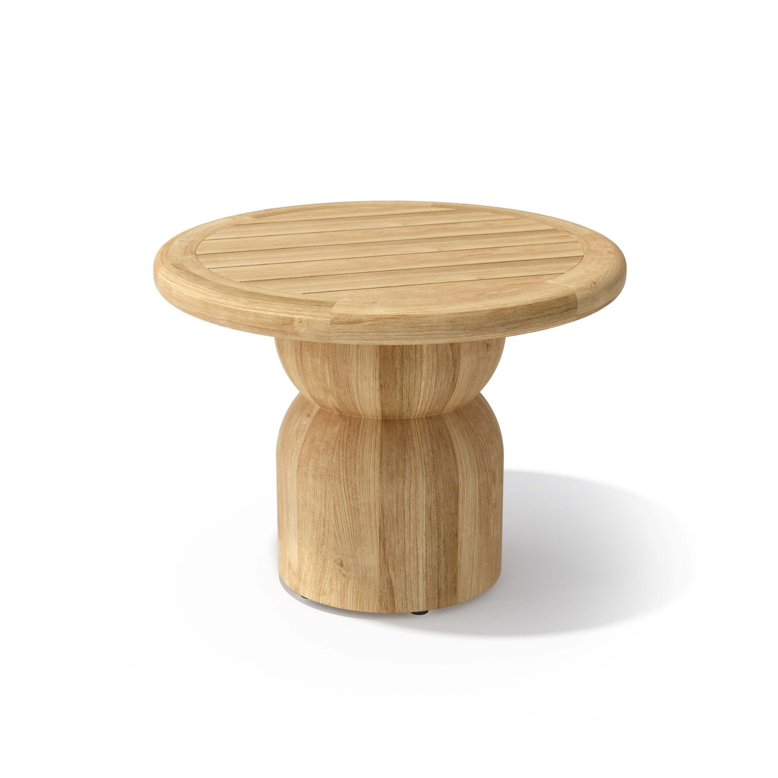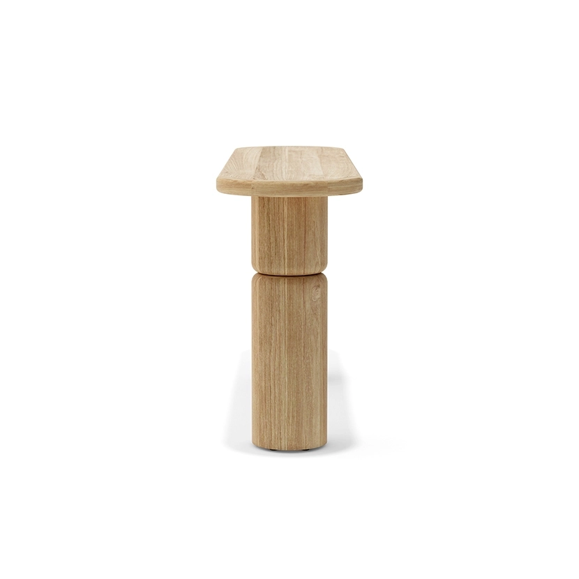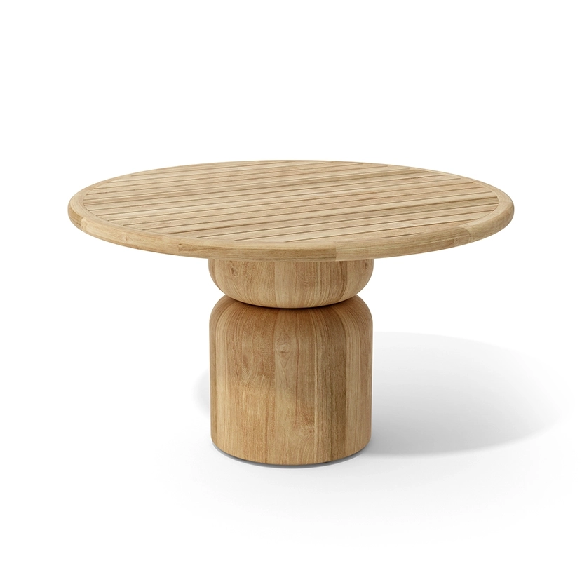 The Bali Tables Collection celebrates sculptural form and natural warmth. Each piece, made from solid teak wood, shows soft curves and bold round legs. The look feels modern yet timeless, blending smooth lines with the wood’s organic texture.