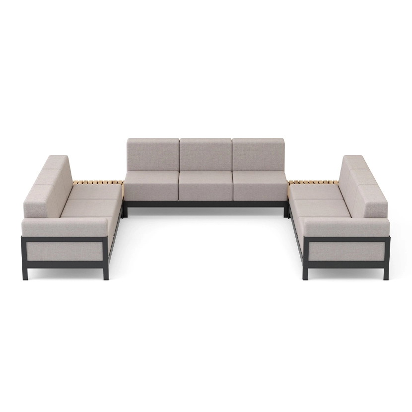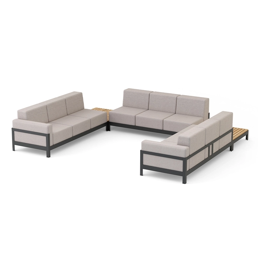 Walters combines stainless steel, wood and upholstered cushions engineered to be low maintenance, sturdy and easily cleaned. The collection includes modular sectionals and standalone pieces. With clean lines and classic proportions, the pieces also can easily mix and match with other furniture.