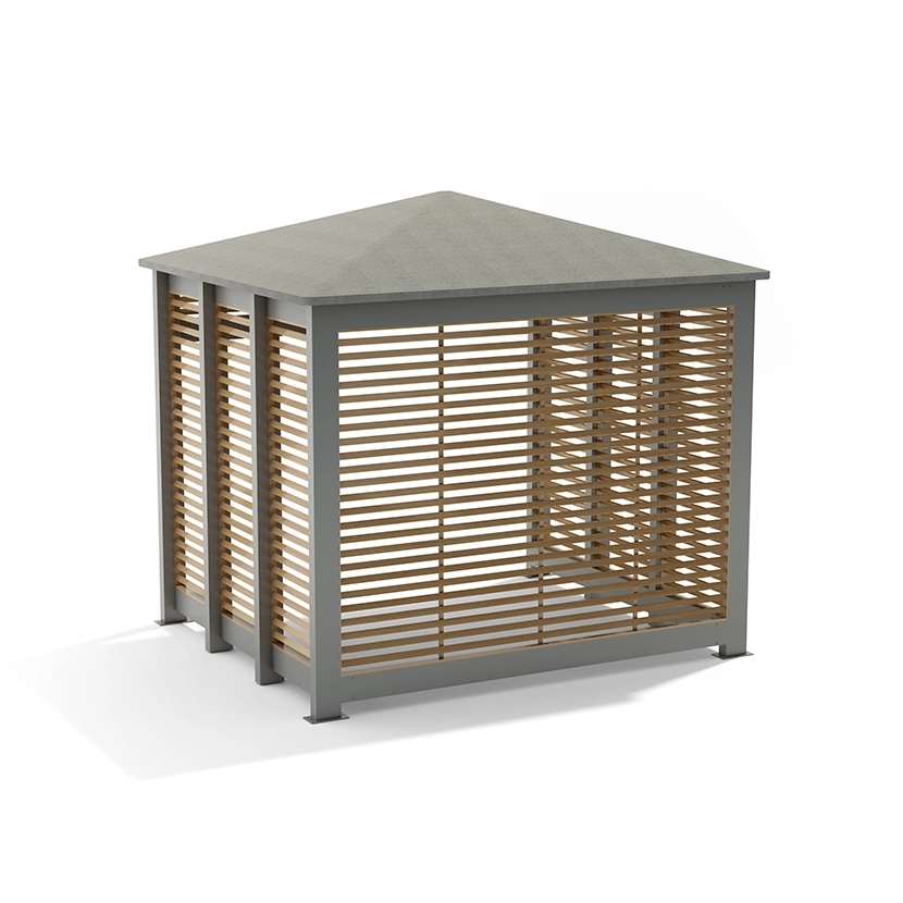 - This pavilion can be custom configured to have up to 1, 2 or 3 slat walls