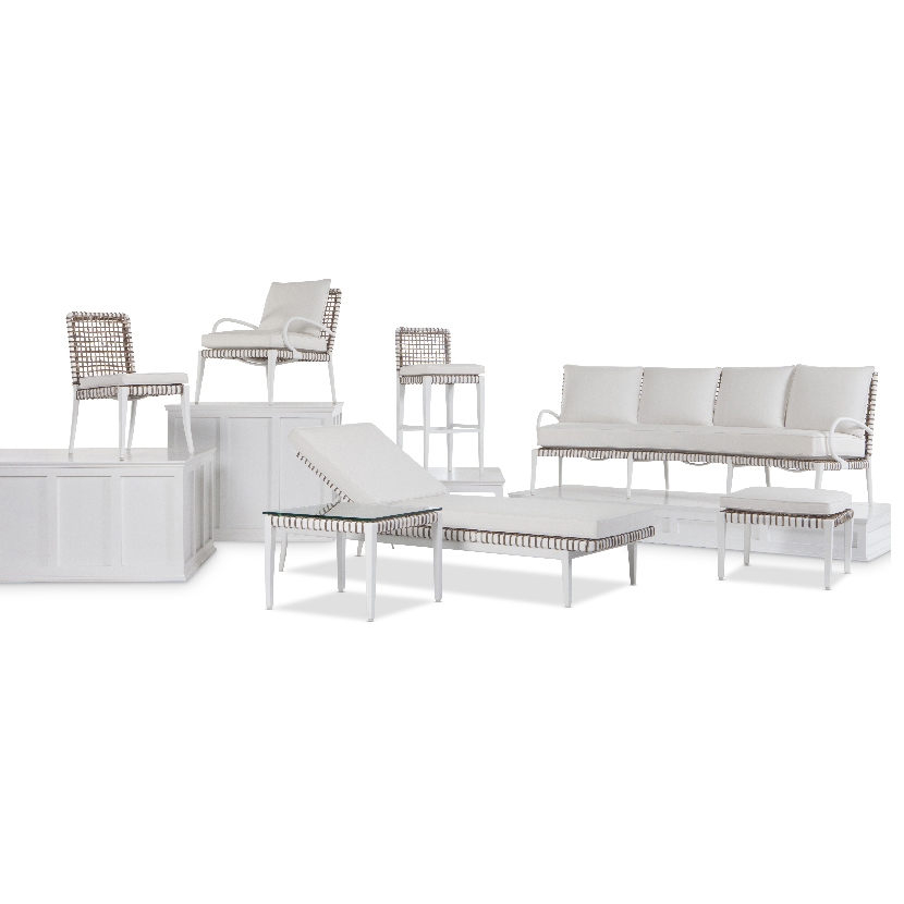 - Frame designed in a durable powder coated aluminum and wrapped in an all-weather outdoor rattan