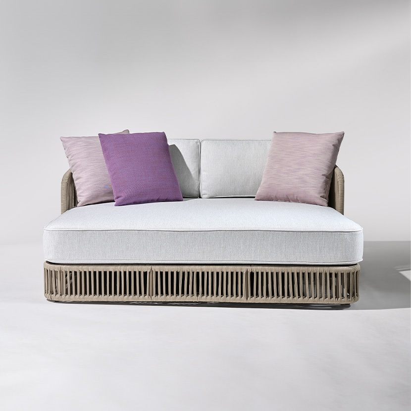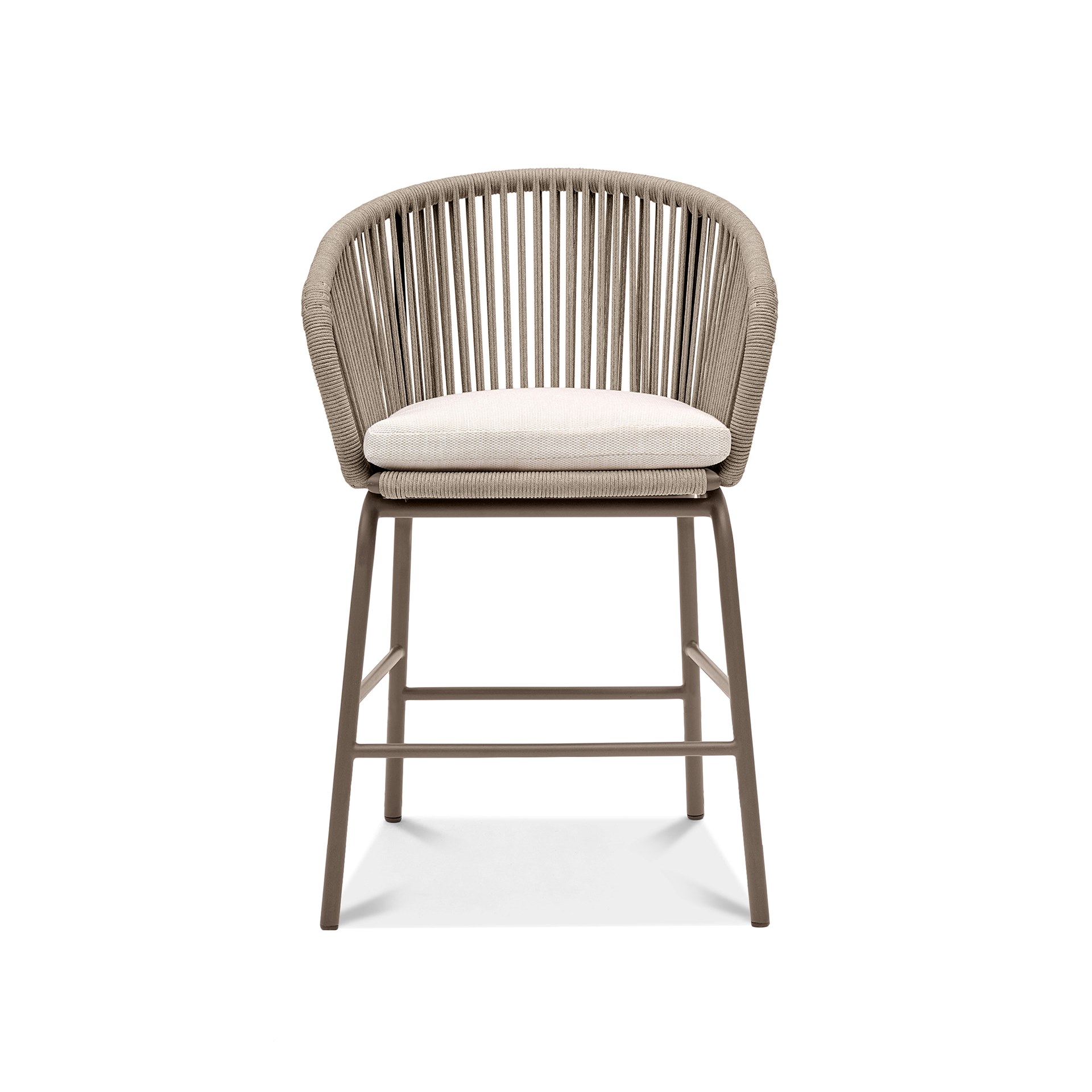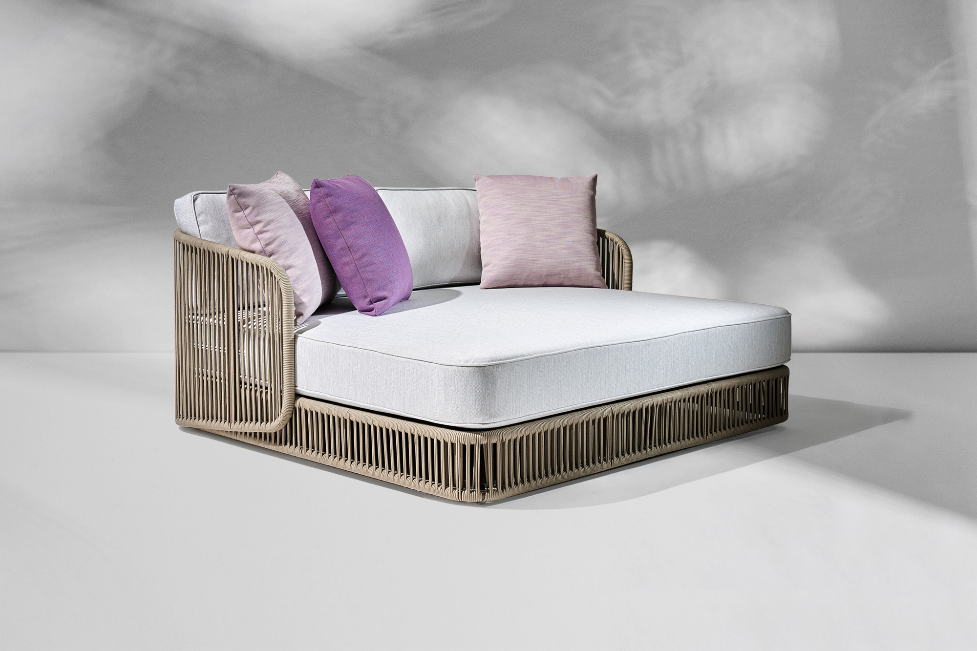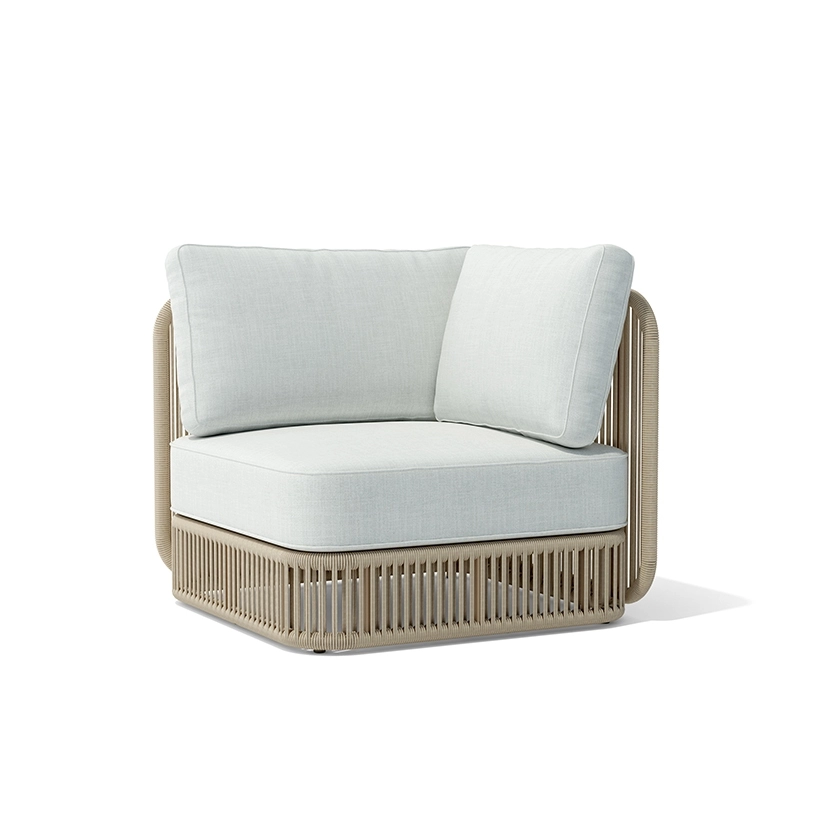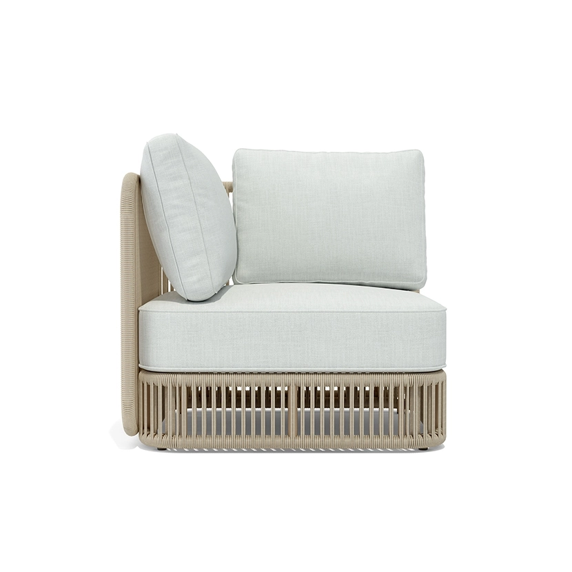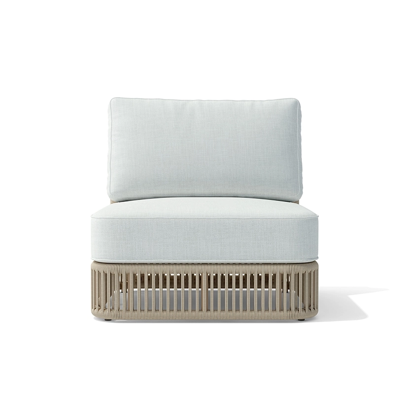 Wainscott collection features handwoven, all-weather rope in powerful vertical lines. Designed with natural spaces in mind, its rhythmic repetition mimics the surrounding landscape and seamlessly integrates into indoor and outdoor settings. The collection includes seating options for lounging and dining, with a versatile and sophisticated design