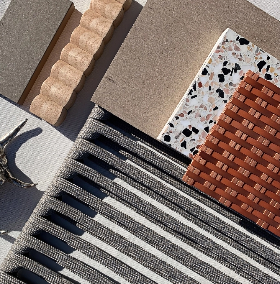 - Cushion set is available in our own premium Giati Elements fabric, in all Sunbrella fabrics or COM. Zippers are corrosion resistant.