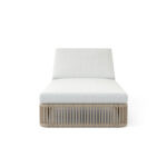 Wainscott Outdoor Collection commands attention by layering handwoven, all-weather rope in powerful vertical lines. Designed with natural spaces in mind, the rhythmic repetition of rope melts into outdoor settings, as the vertical pattern emulates the lines of trees, grasses, and things that grow. As the sun sets, the play of light and shadow across the woven frames coalesce with the landscape, mirroring the very environment they occupy. The Wainscott Collection includes seating essentials for lounging and dining, which can pair effortlessly with a variety of table and casegood styles thanks to its uncomplicated geometry and refined aesthetic appeal.