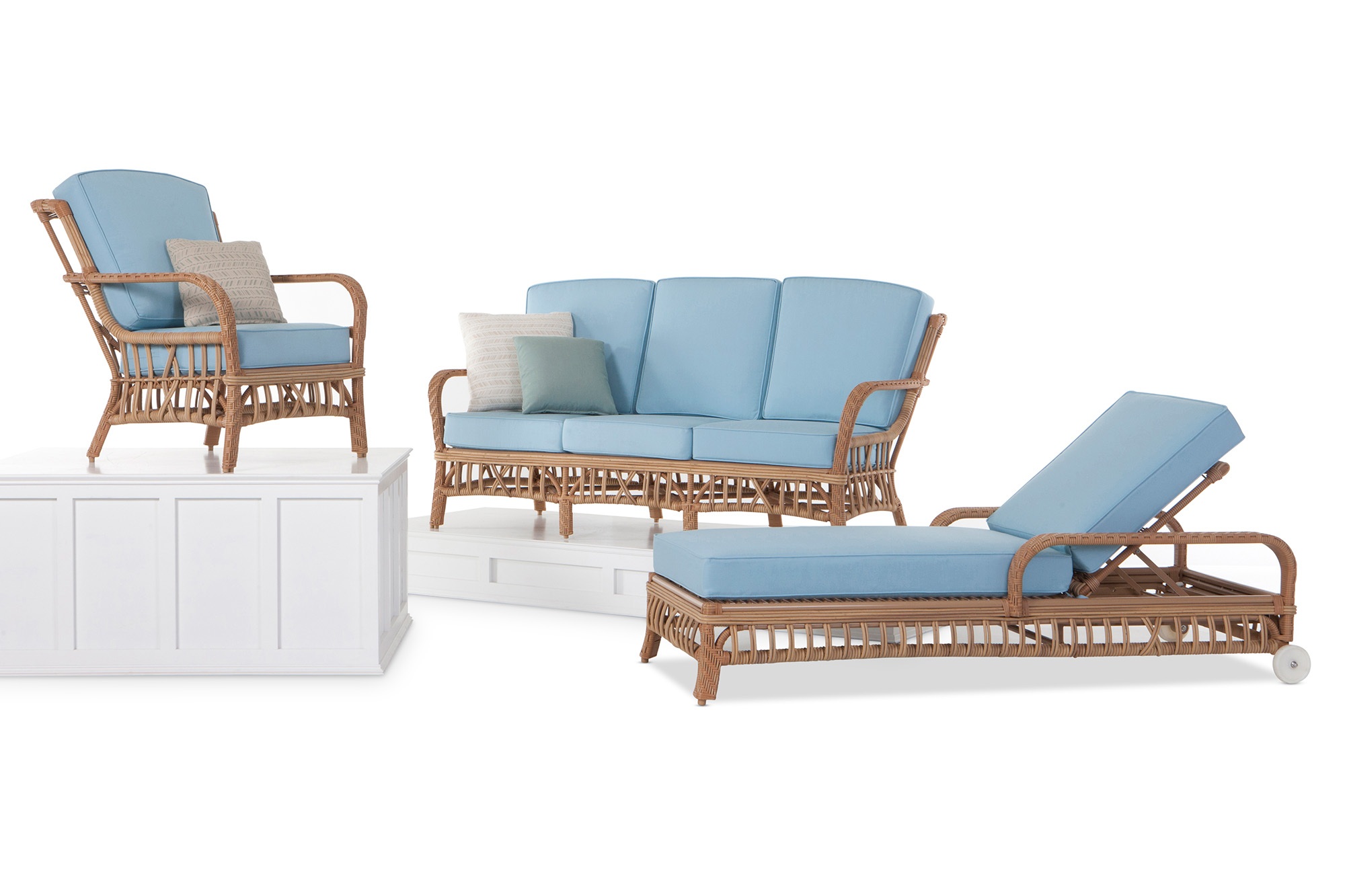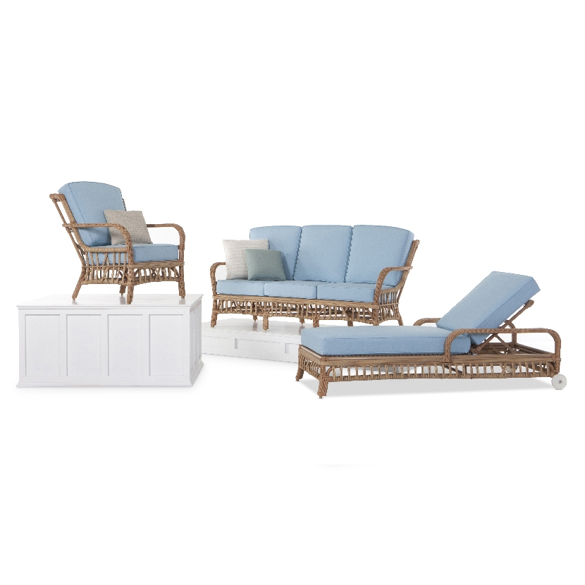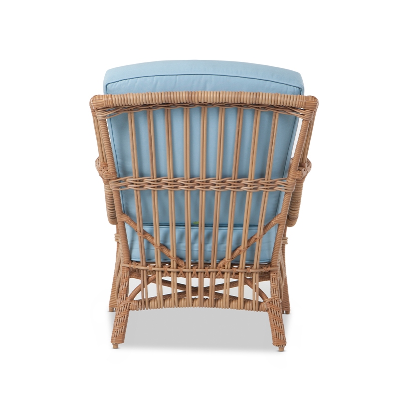 - Internal frame designed in a durable powder coated aluminum and wrapped in an all-weather outdoor rattan