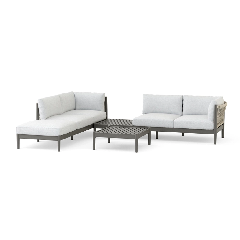 With remarkable comfort and elegant styling, the Georgica lounge collection invites you to sink in. Constructed from solid teak wood, subtle curves complement contrasting woven rope panels. Georgica is offered as a sectional sofa allowing a variety of planning configurations.