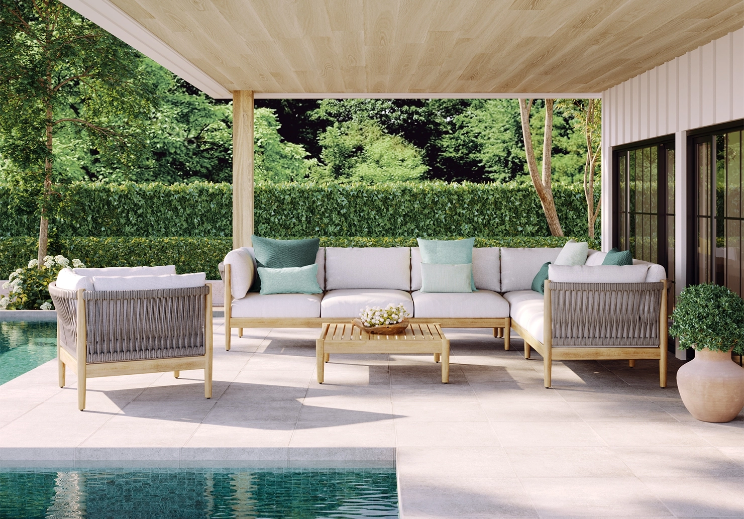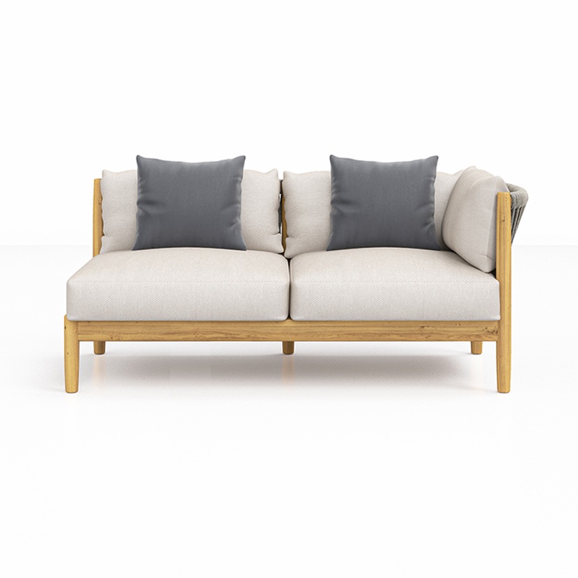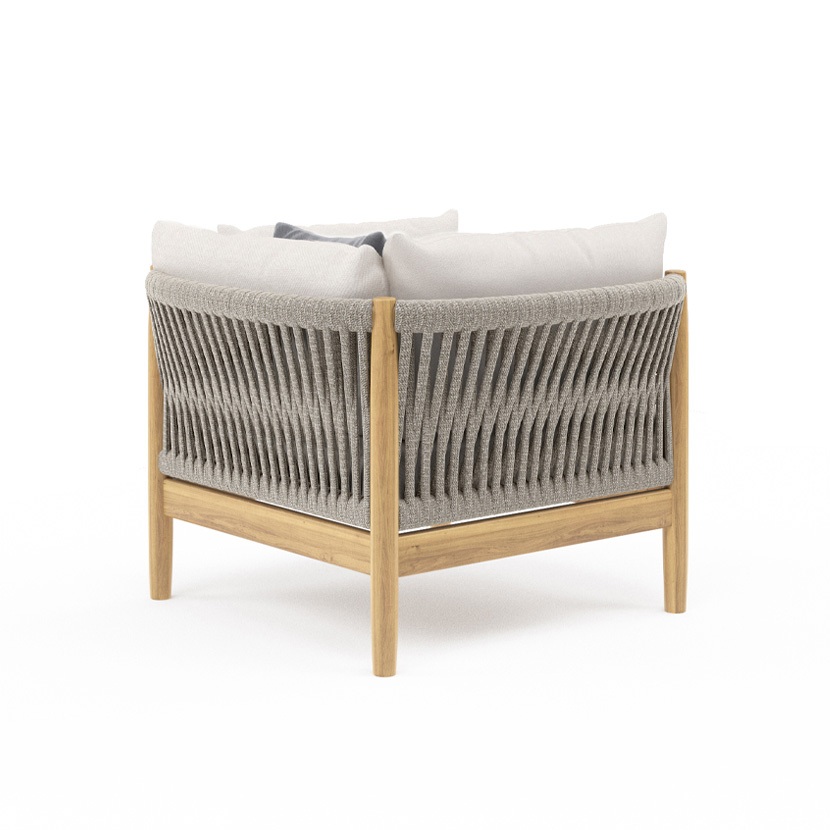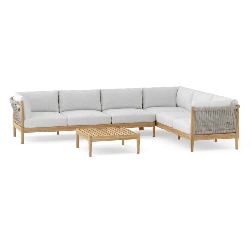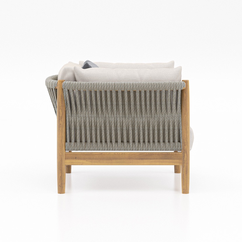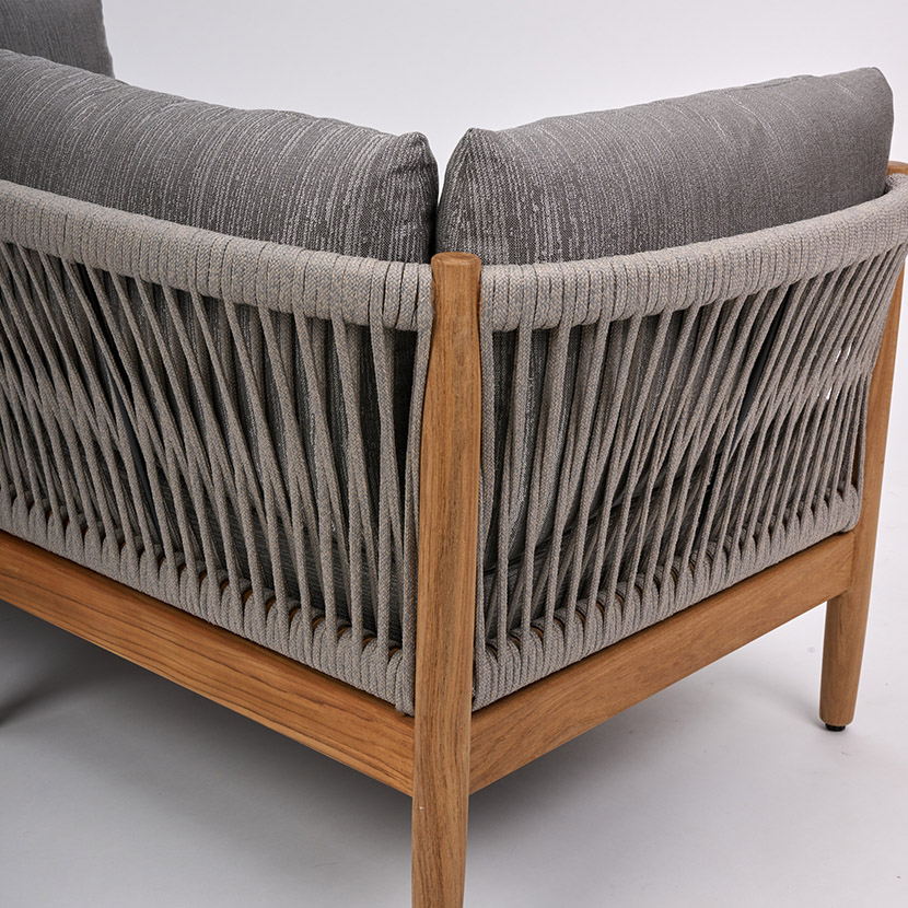 With remarkable comfort and elegant styling, the Georgica lounge collection invites you to sink in. Constructed from solid teak wood, subtle curves complement contrasting woven rope panels. Georgica is offered as a sectional sofa allowing a variety of planning configurations.