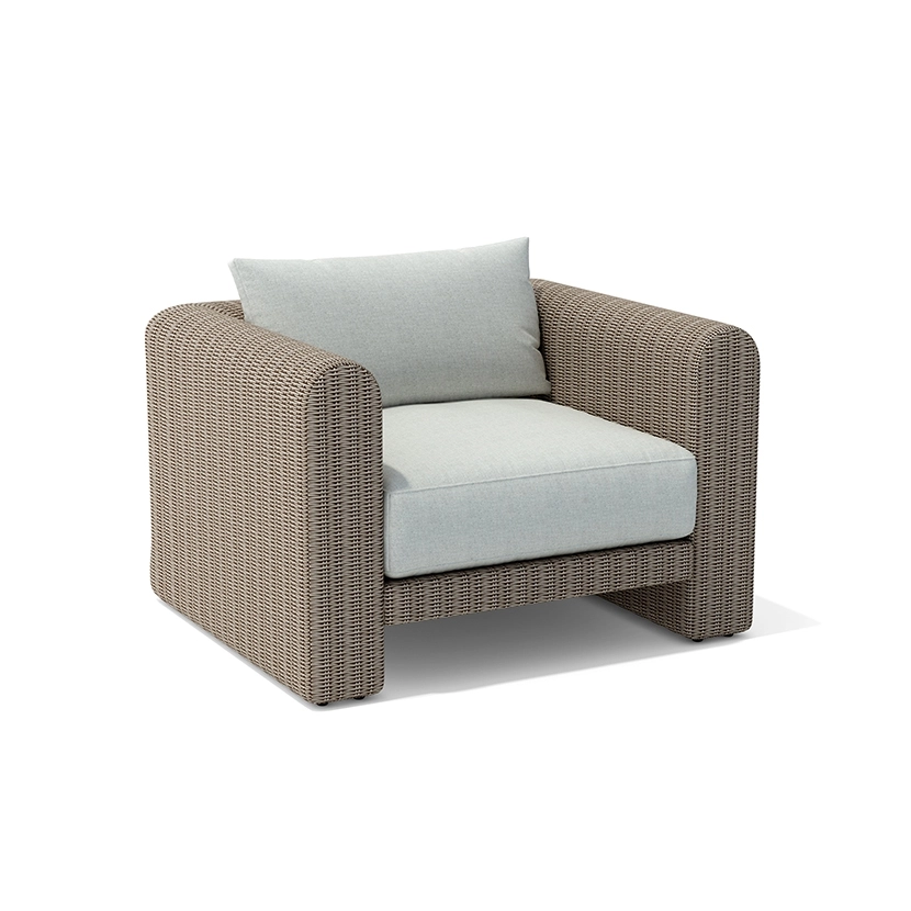 - Internal frame designed in a durable powder coated aluminum and wrapped in an all-weather outdoor rattan