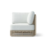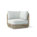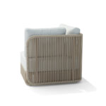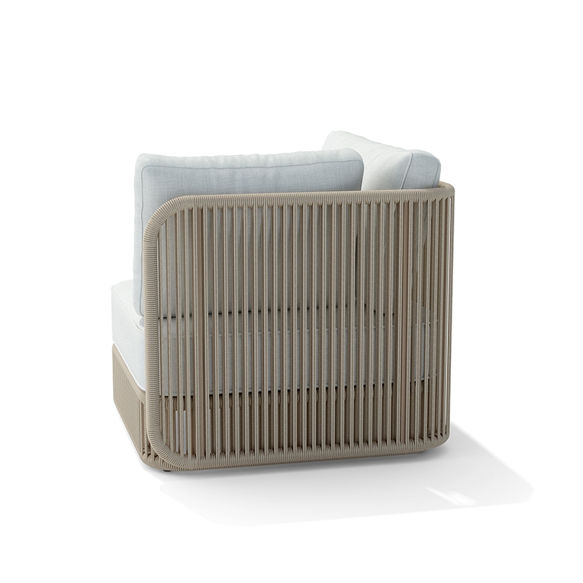 Wainscott collection features handwoven, all-weather rope in powerful vertical lines. Designed with natural spaces in mind, its rhythmic repetition mimics the surrounding landscape and seamlessly integrates into indoor and outdoor settings. The collection includes seating options for lounging and dining, with a versatile and sophisticated design