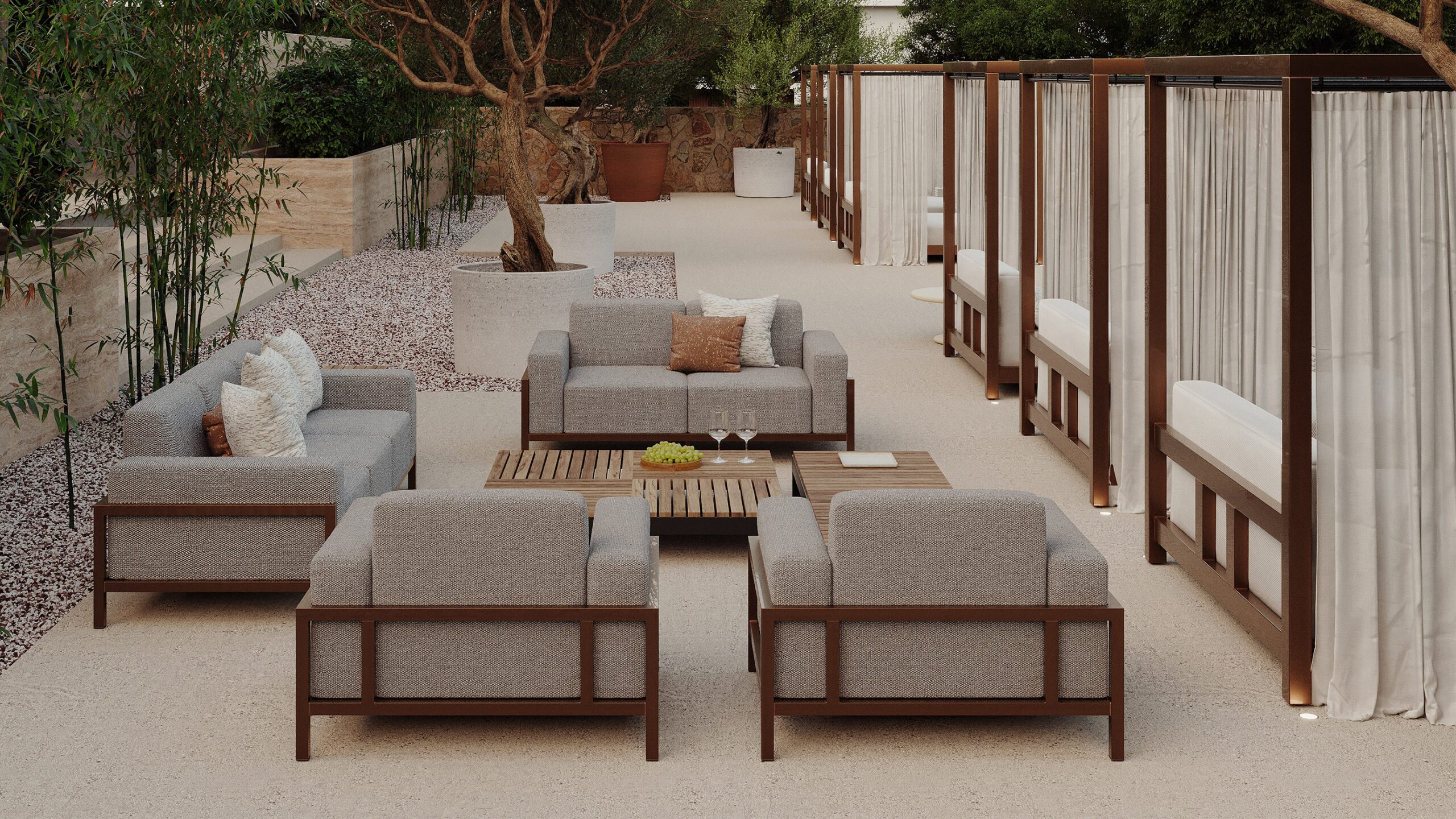 The More Comfort Collection features clean lines, generous and solid proportions, and thoughtful materiality. The collection transitions easily between indoor and outdoor environments, creating a sanctuary.