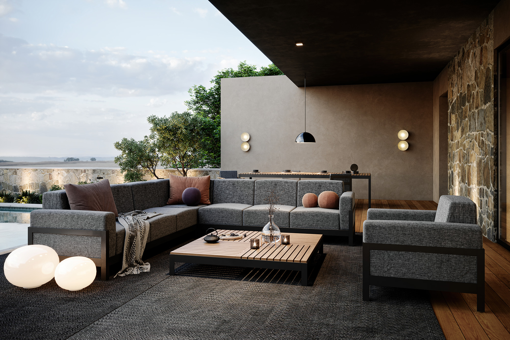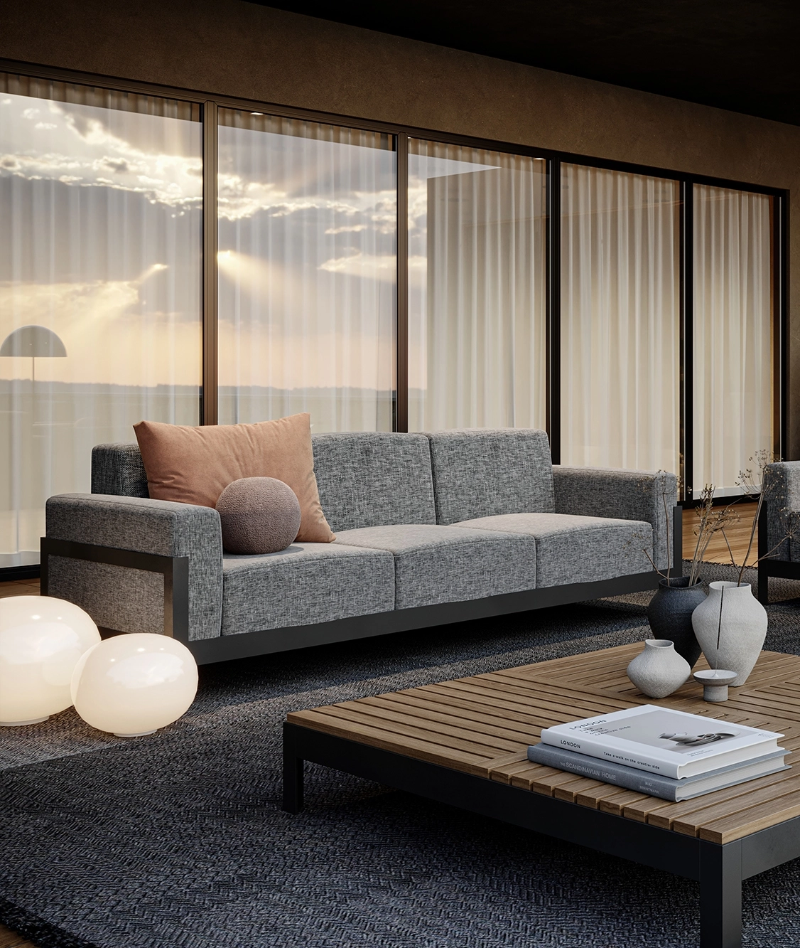 The More Comfort Collection features clean lines, generous and solid proportions, and thoughtful materiality. The collection transitions easily between indoor and outdoor environments, creating a sanctuary.