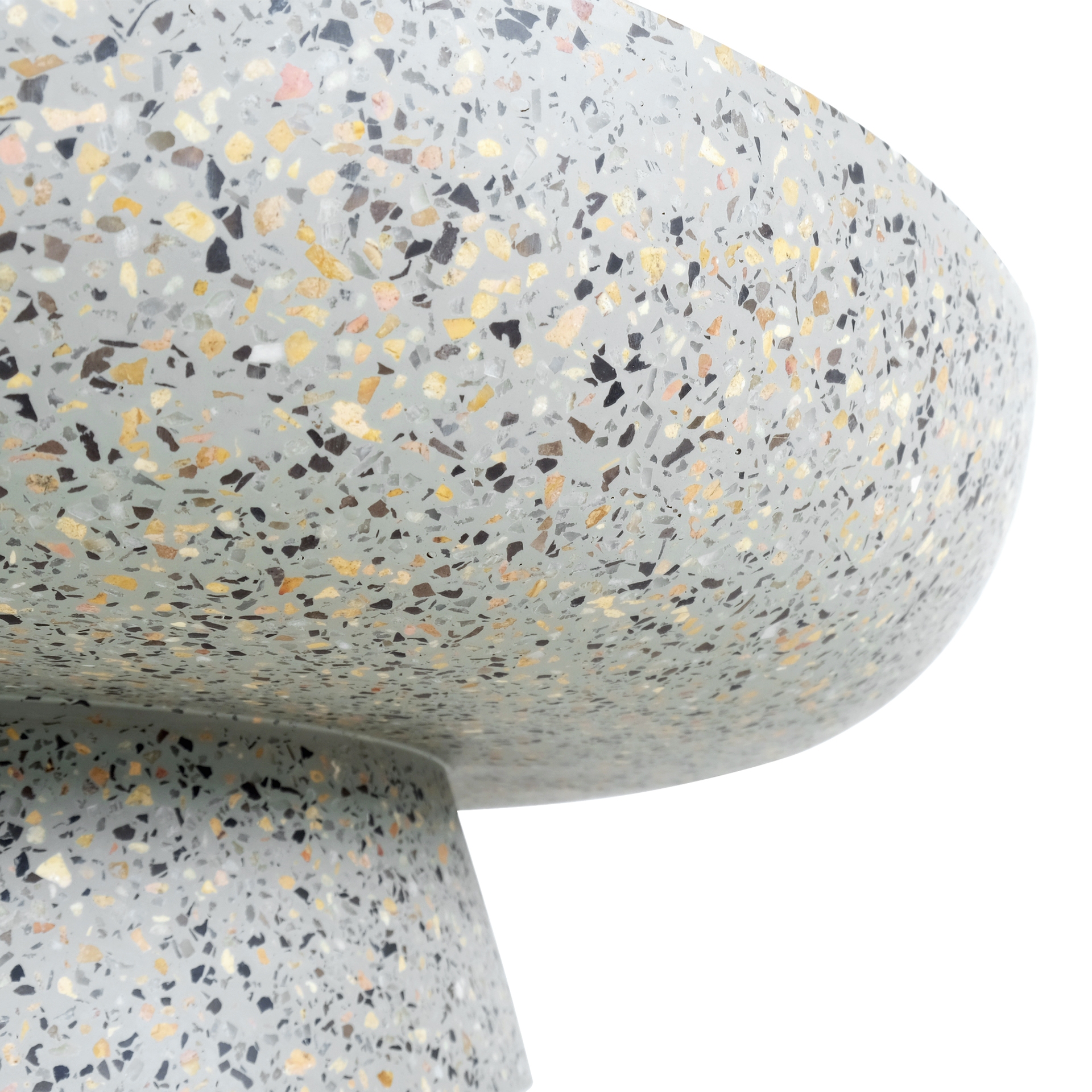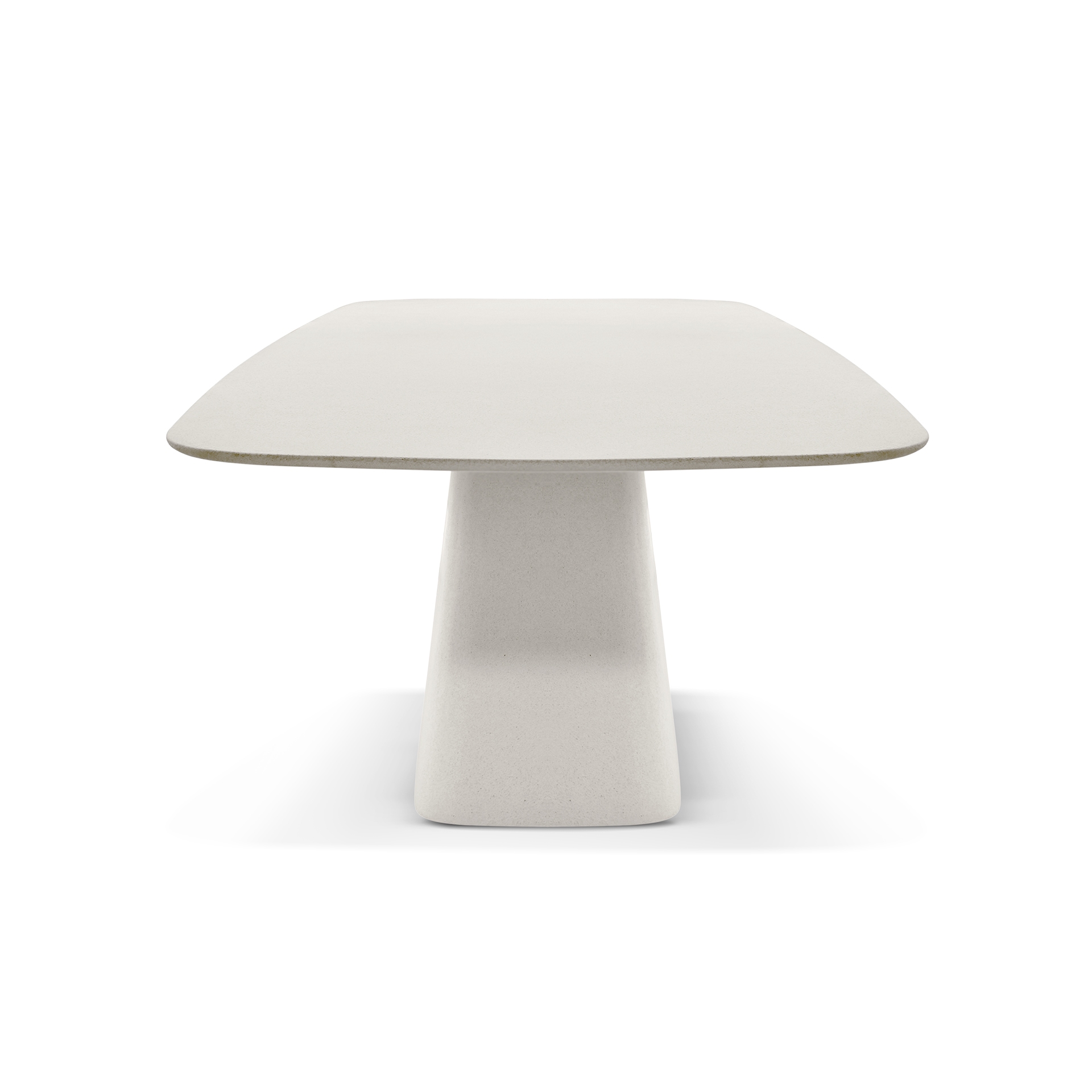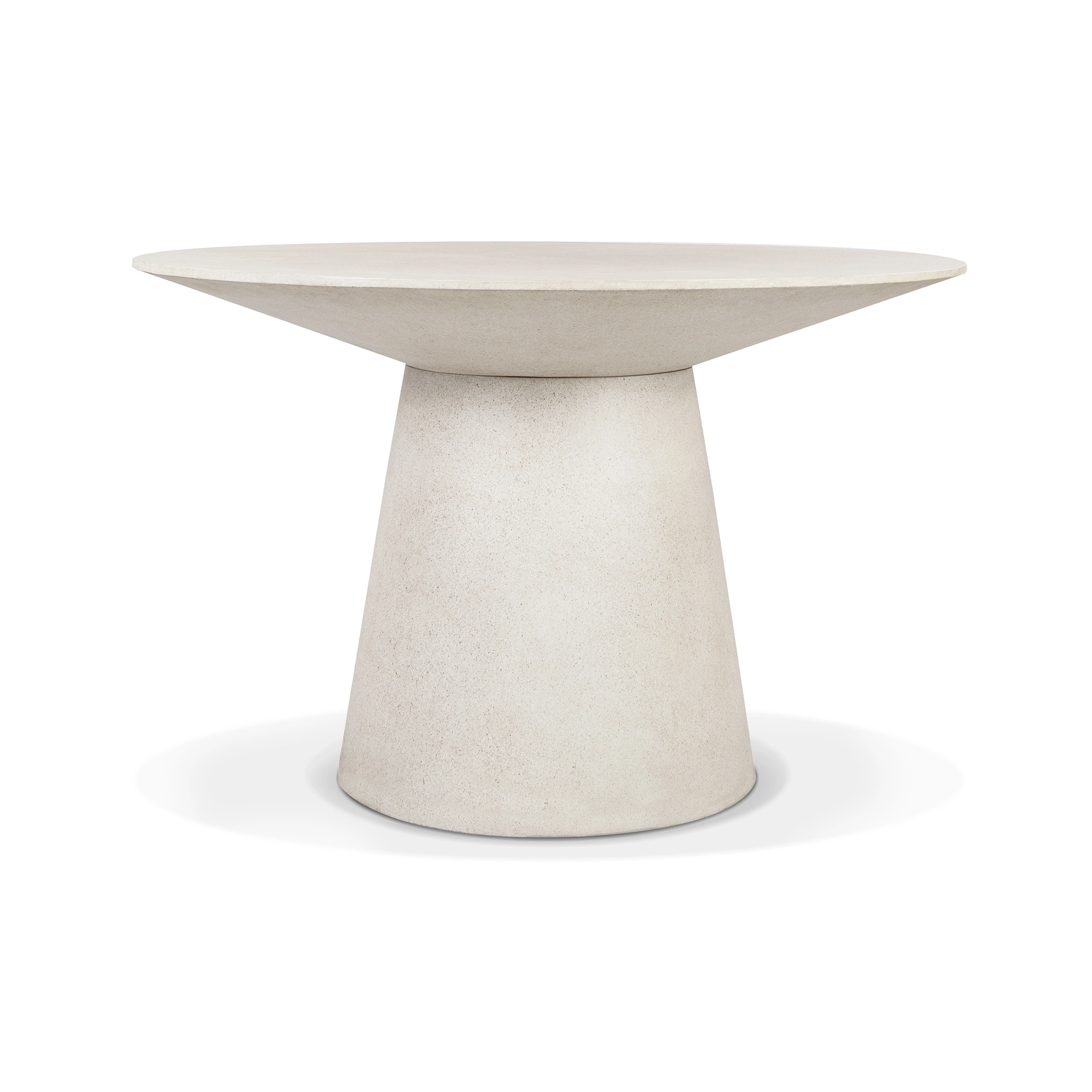 This collection is comprised of fiberstone which is a proprietary material made from crushed stone, fiberglass and resin. The benefit of this material is it mimics the appearance of traditional concrete but it is significantly lighter, more durable, and nore resistant against cracking, warping, and crumbling.