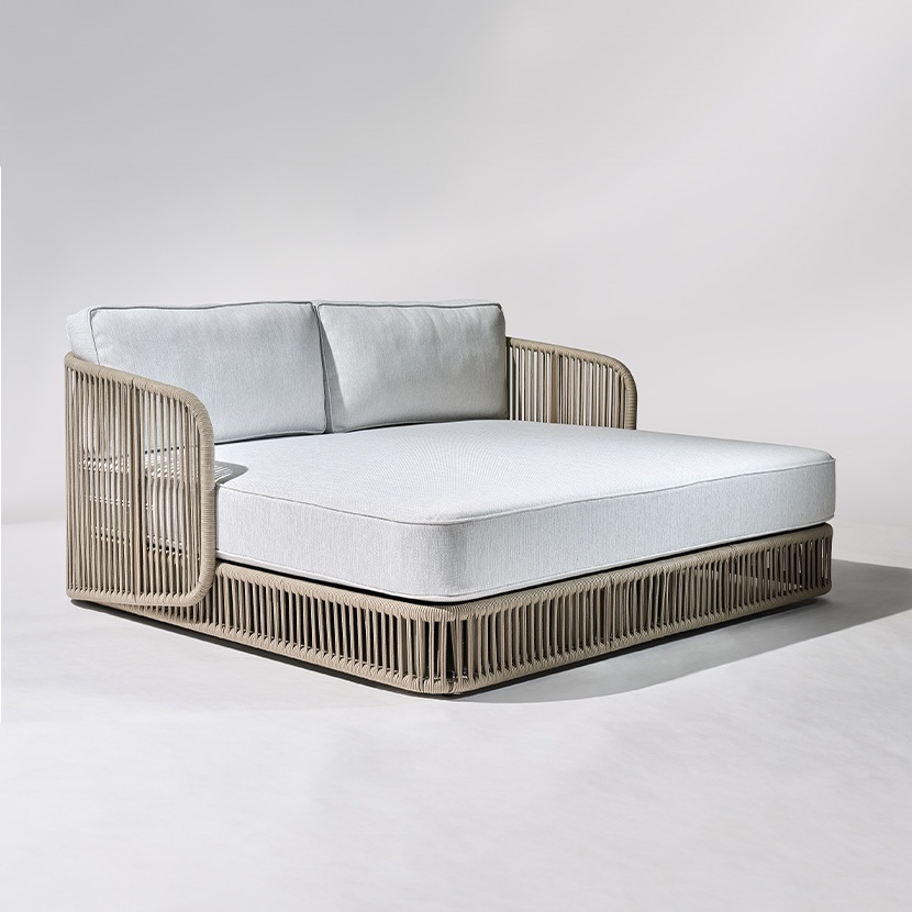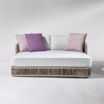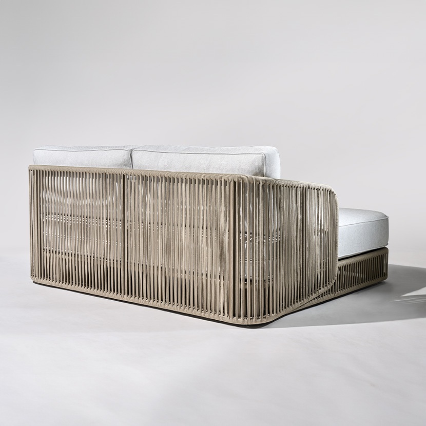 Wainscott collection features handwoven, all-weather rope in powerful vertical lines. Designed with natural spaces in mind, its rhythmic repetition mimics the surrounding landscape and seamlessly integrates into indoor and outdoor settings. The collection includes seating options for lounging and dining, with a versatile and sophisticated design