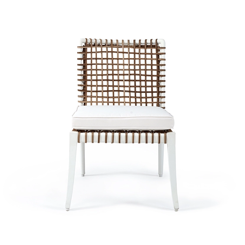 - Frame designed in a durable powder coated aluminum and wrapped in an all-weather outdoor rattan