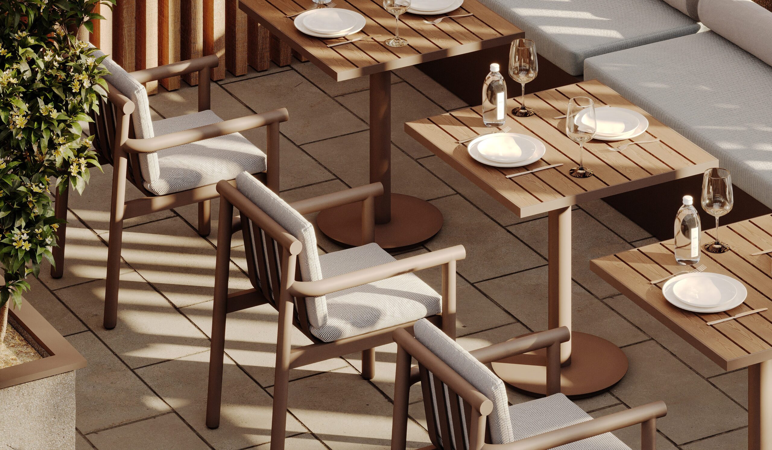 Available in a variety of sizes, shapes, and top styles, the Destin Collection offers outdoor dining solutions with a sleek, minimalist versatility.