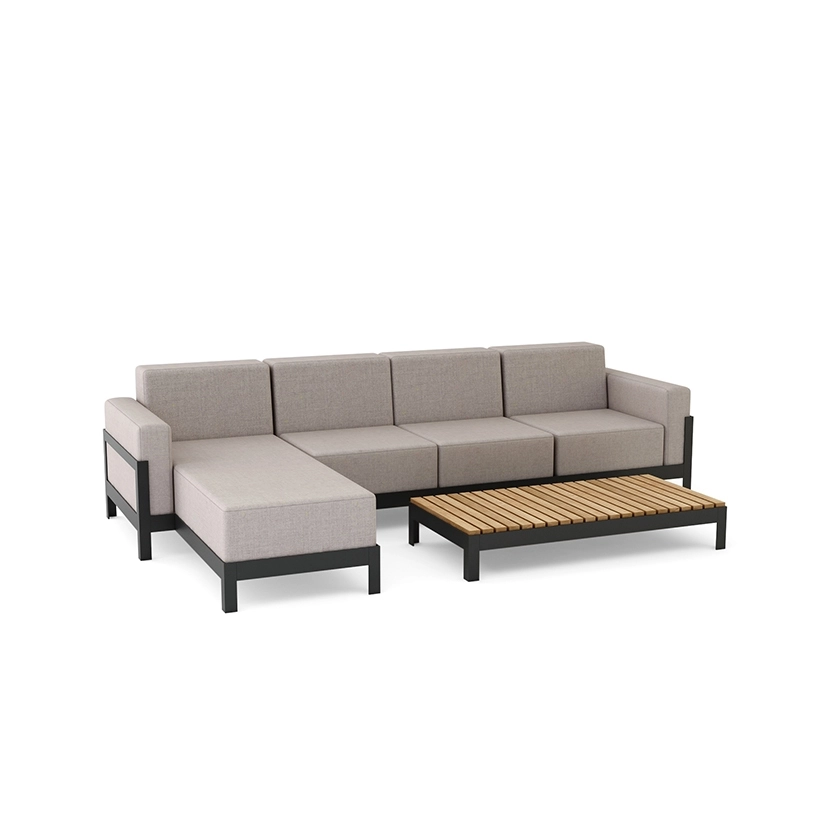 Walters combines stainless steel, wood and upholstered cushions engineered to be low maintenance, sturdy and easily cleaned. The collection includes modular sectionals and standalone pieces. With clean lines and classic proportions, the pieces also can easily mix and match with other furniture.