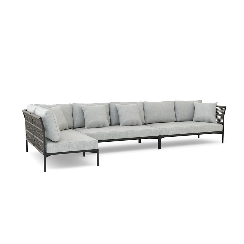 Reminiscent of play in shadows, the Longshore collection’s dense weave adds texture to any environment. Offering a generous sofa sectional and complimentary pieces, Longshore can easily be planned for any space large or small.