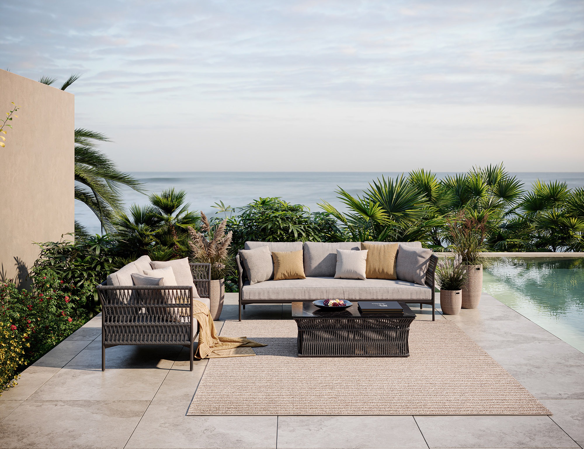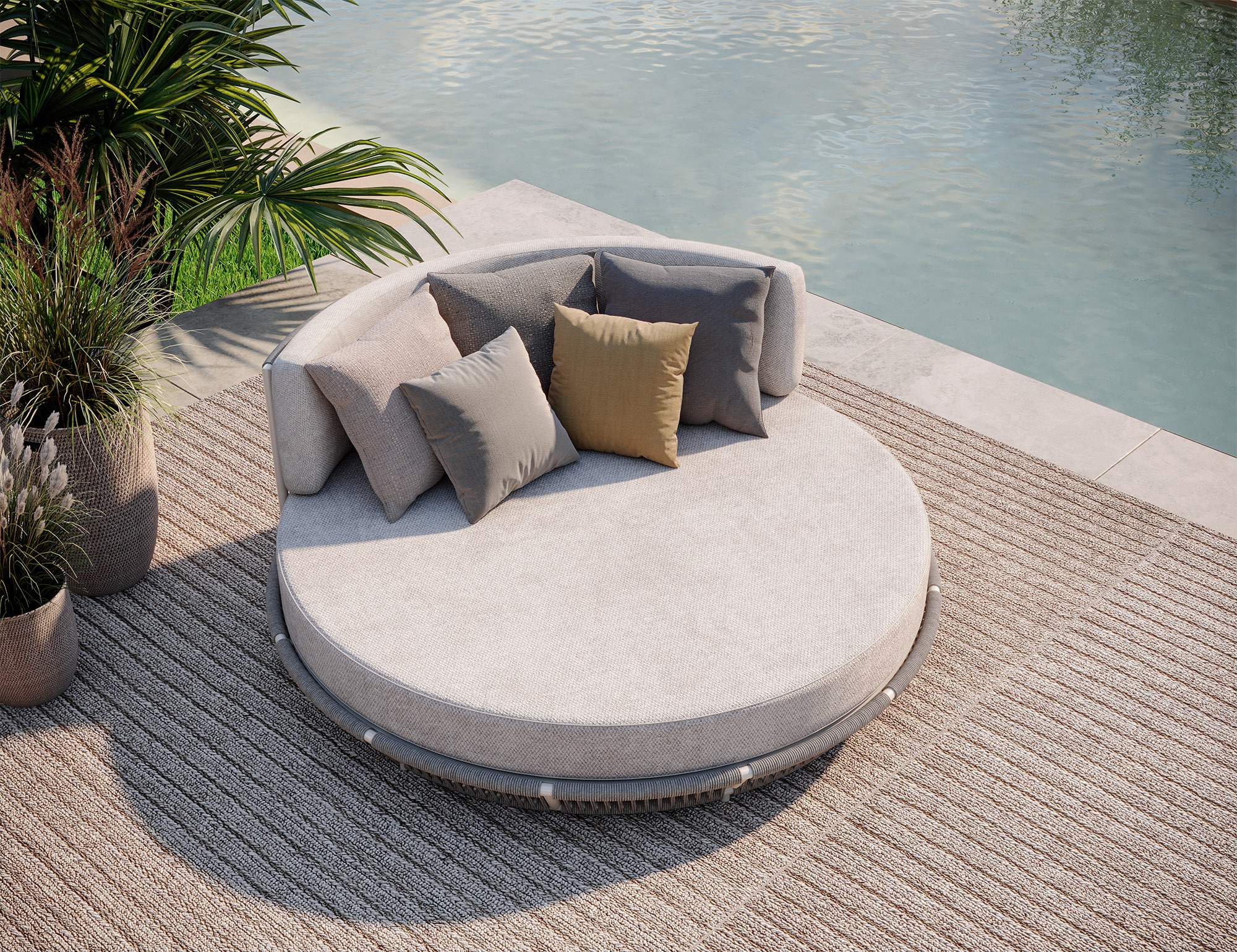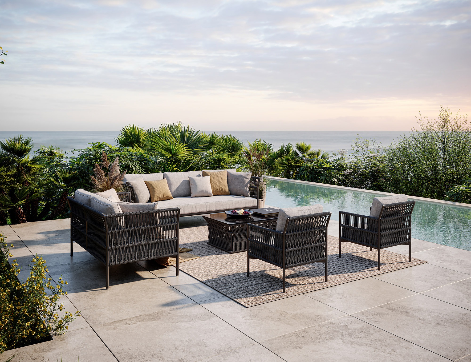 - Cushion set is available in our own premium Giati Elements fabric, in all Sunbrella fabrics or COM. Zippers are corrosion resistant.