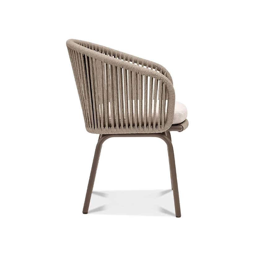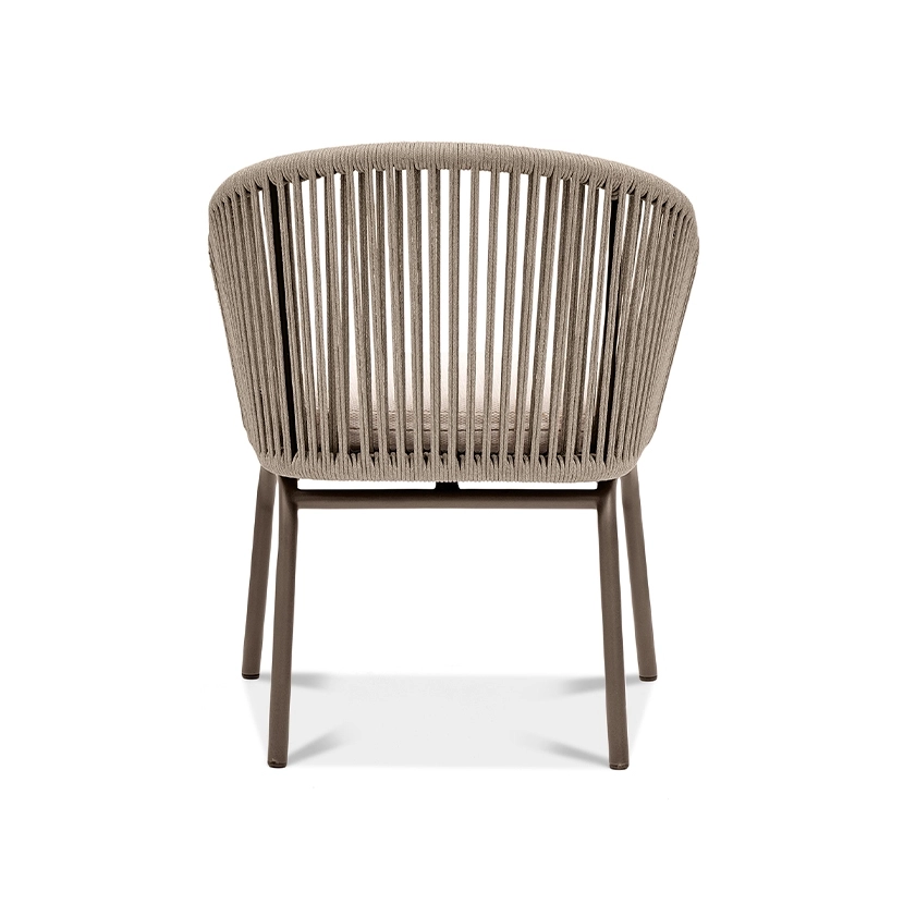 Wainscott collection features handwoven, all-weather rope in powerful vertical lines. Designed with natural spaces in mind, its rhythmic repetition mimics the surrounding landscape and seamlessly integrates into indoor and outdoor settings. The collection includes seating options for lounging and dining, with a versatile and sophisticated design