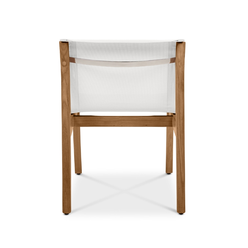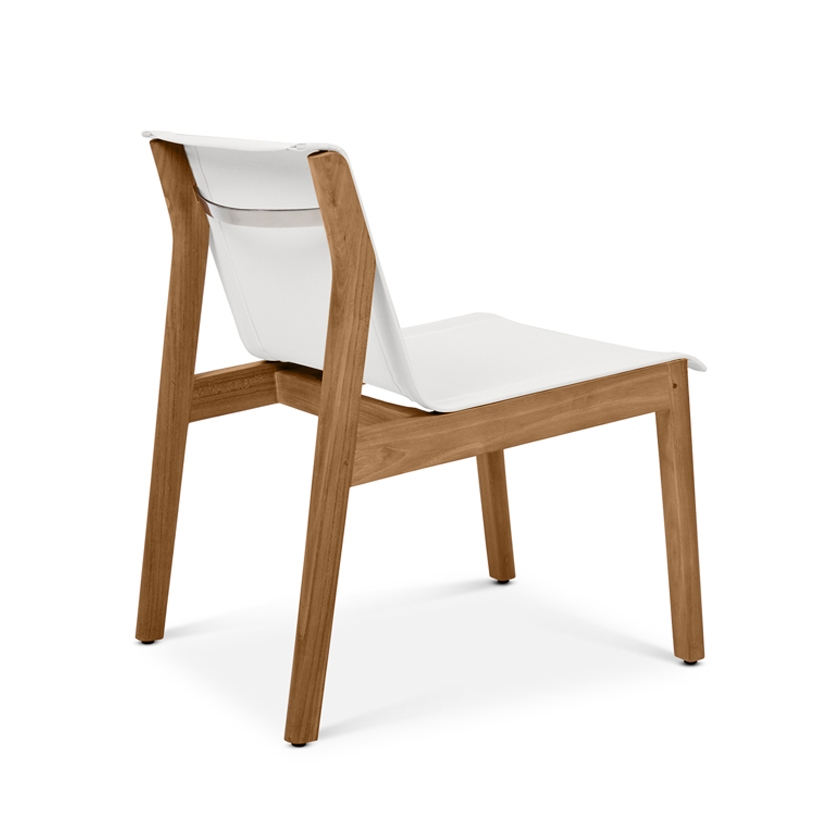 The Tessera Lounge Chair features a seamless seat and back sling. The weather resistant Batyline mesh is comfortable without the need for cushions or bolsters. Teak grain details and polished hardware accentuate the use of this mixed material collection.