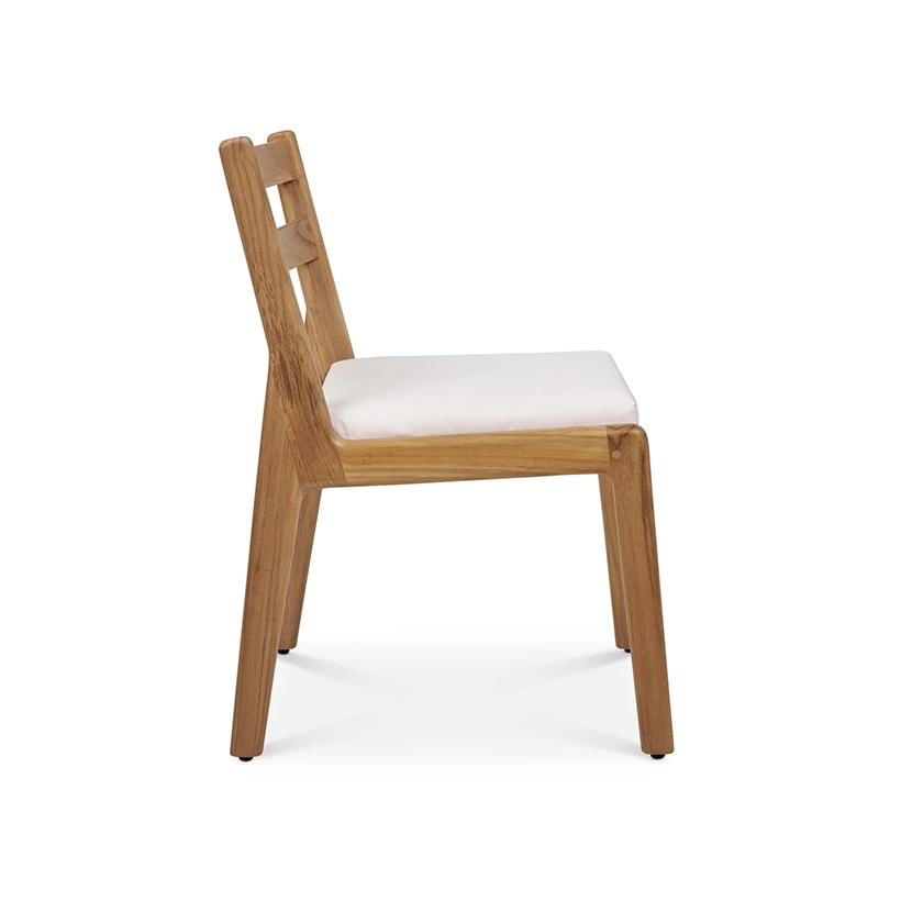 This six-piece collection offers seating options for both dining and lounging. Each piece is crafted with a solid grade-A teak frame, a mesh sling structure, and is topped with upholstered cushions. Quality materials and thoughtful construction promote longevity, while the relaxed posture and clean lines bring an undeniable charm.
