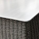 - Base covered in hand-woven outdoor synthetic rope, available in Walters Round Rope offering.