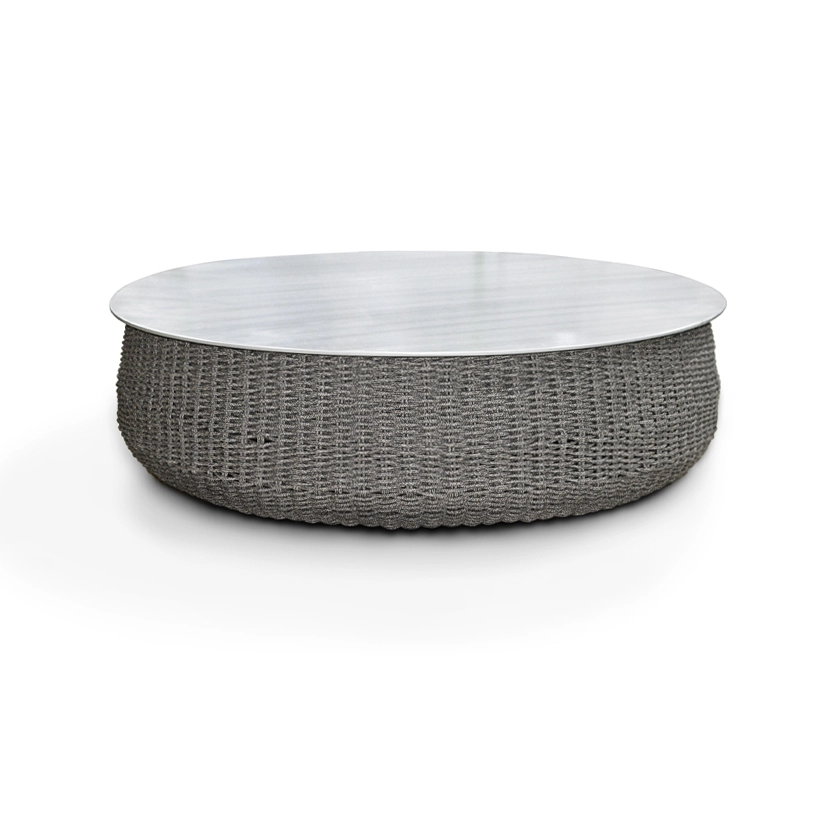 - Base covered in hand-woven outdoor synthetic rope, available in Walters Round Rope offering.