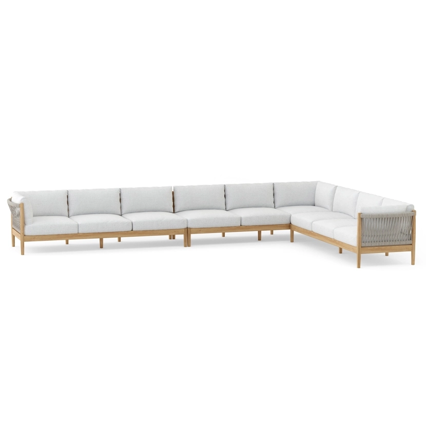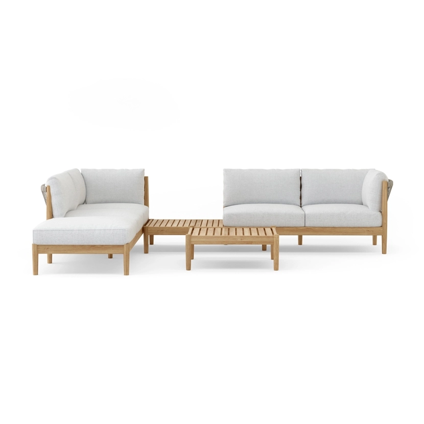 With remarkable comfort and elegant styling, the Georgica lounge collection invites you to sink in. Constructed from solid teak wood, subtle curves complement contrasting woven rope panels. Georgica is offered as a sectional sofa allowing a variety of planning configurations.