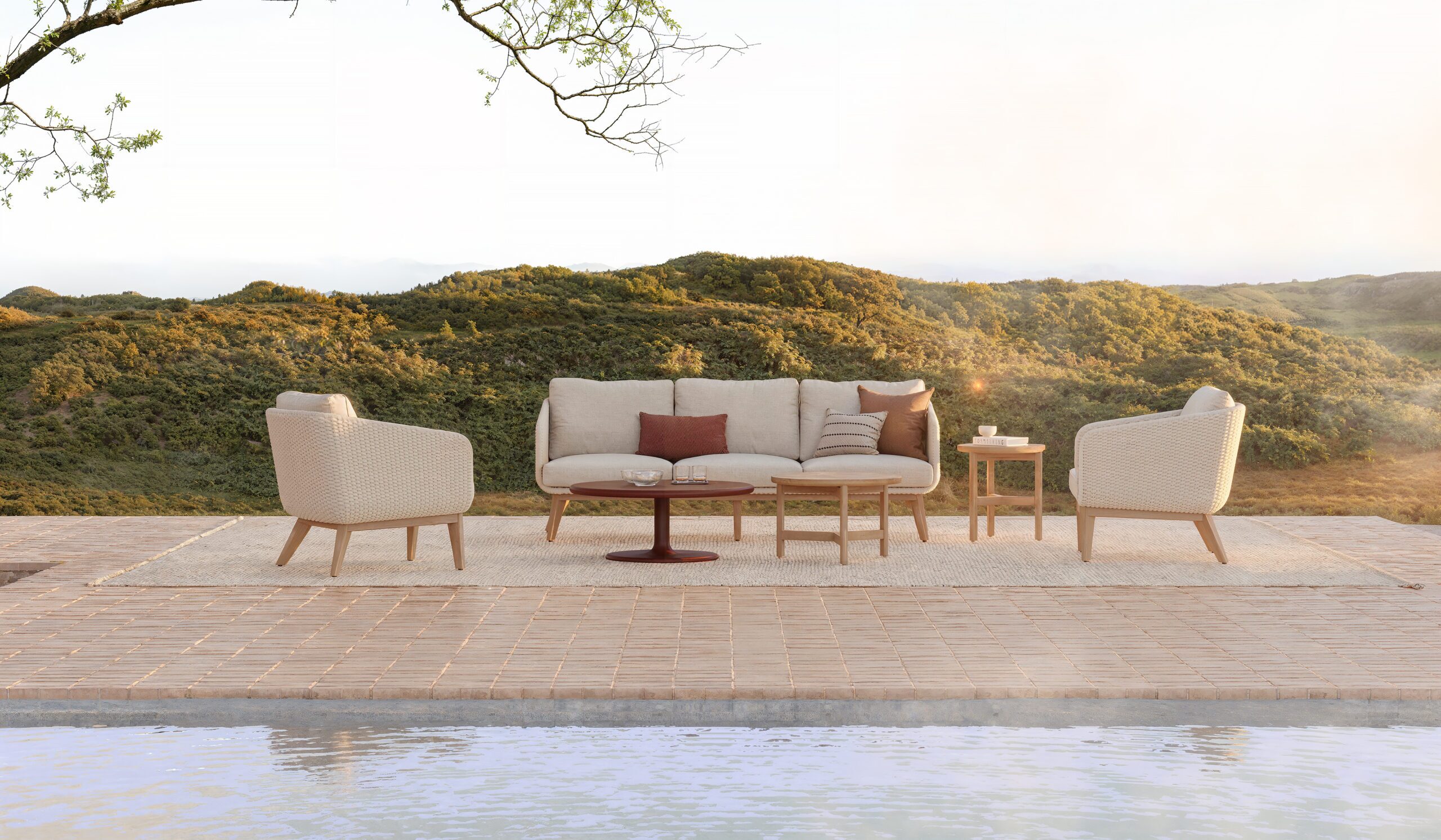 Sophisticated and inviting, the Gondola collection by design master Roger Thomas features a gentle, curved shape that embraces and comforts. Crafted with teak frames and handwoven Rhino round rope seats, each piece exudes elegance and makes a timeless addition to any space.