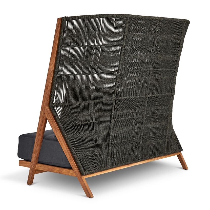 Characterized by its dramatic woven rope backrests, the Walters Outdoor Arbor Collection offers lounging and dining essentials with a stylish edge. The collection’s dynamic A-frame teak structures are offset by elegantly curved backrests, which are crafted from durable, weather-resistant rope.