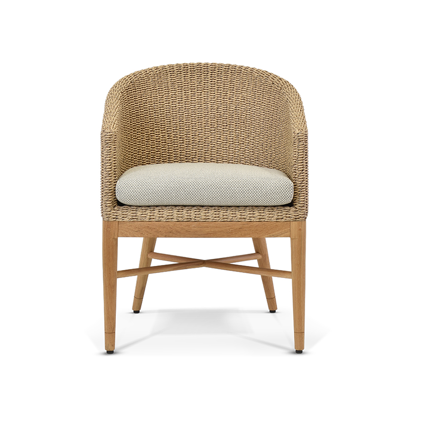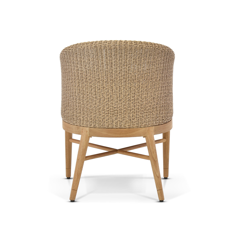 Discover the Isla Outdoor Dining Chair Collection, crafted with all-weather wicker and teak legs. Stylish, durable, and easy care for modern outdoor dining.