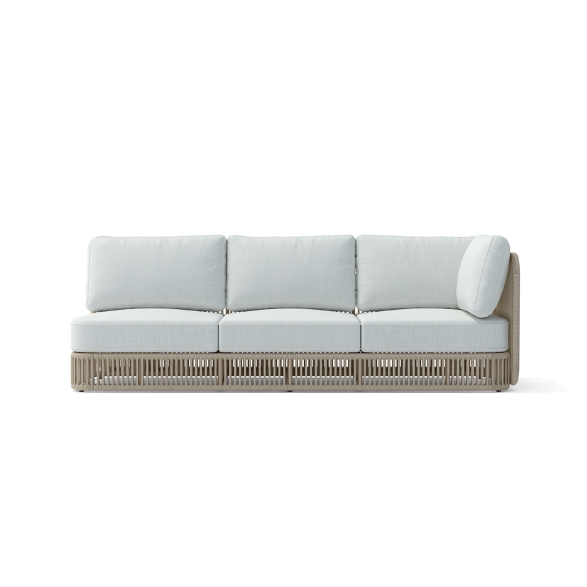 Wainscott collection features handwoven, all-weather rope in powerful vertical lines. Designed with natural spaces in mind, its rhythmic repetition mimics the surrounding landscape and seamlessly integrates into indoor and outdoor settings. The collection includes seating options for lounging and dining, with a versatile and sophisticated design