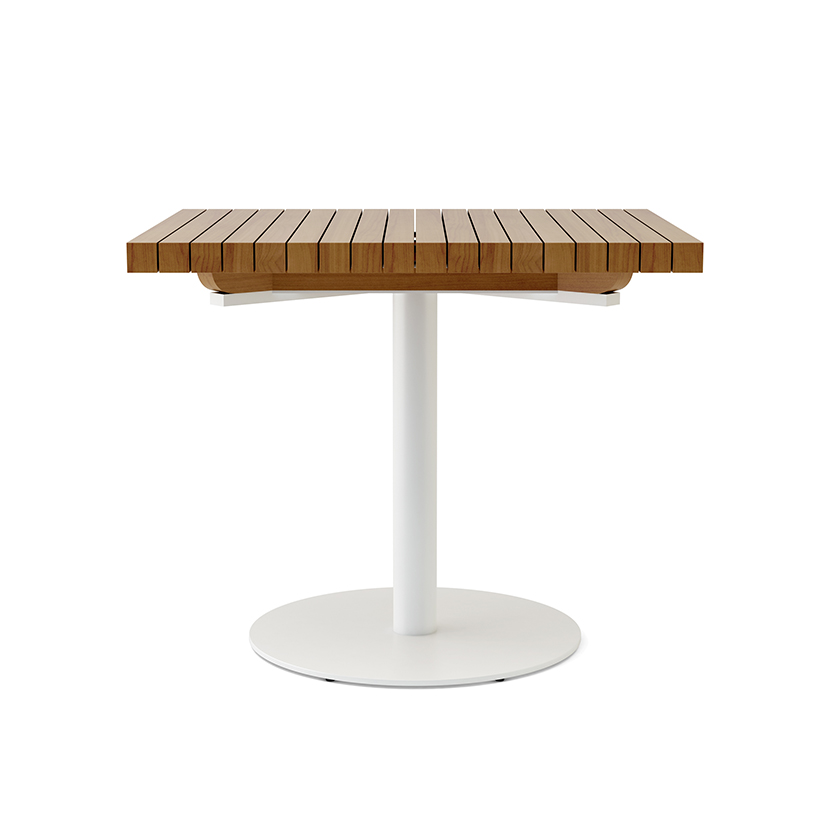 The Latitude table blends modern simplicity with enduring outdoor performance. Its tabletop is crafted from rich teak, offering a warm and natural aesthetic that ages beautifully over time. The sturdy, powder-coated stainless steel base provides a clean silhouette and exceptional durability against the elements. Designed for effortless outdoor living, Latitude’s refined materials and minimalist form make it a versatile piece for patios, terraces, or poolside lounging.