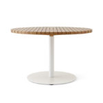 The Latitude table blends modern simplicity with enduring outdoor performance. Its tabletop is crafted from rich teak, offering a warm and natural aesthetic that ages beautifully over time. The sturdy, powder-coated stainless steel base provides a clean silhouette and exceptional durability against the elements. Designed for effortless outdoor living, Latitude’s refined materials and minimalist form make it a versatile piece for patios, terraces, or poolside lounging.