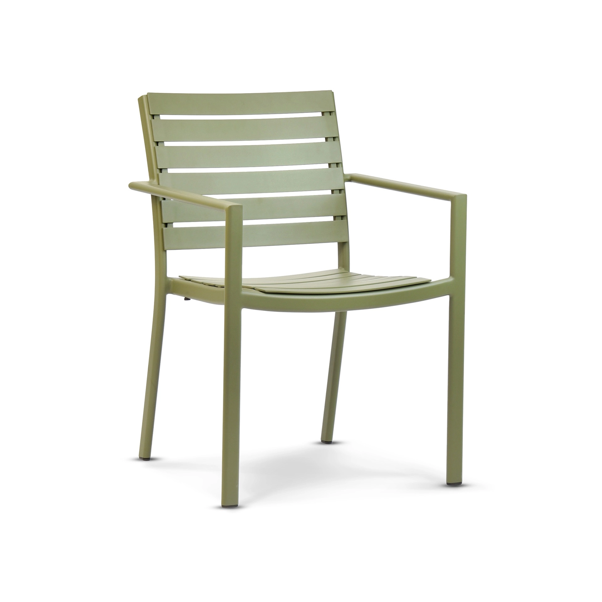 The Leona collection offers a sleek, modern take on outdoor seating with clean lines and a minimalist silhouette. Crafted from durable powder-coated aluminum, this chair is designed to withstand the elements while maintaining its sophisticated look. The gently curved seat and supportive slat-back design provide comfort without compromising on style. Ideal for patios, terraces, or poolside lounges, the Leona chair is also stackable for easy storage and flexibility in any outdoor setting.